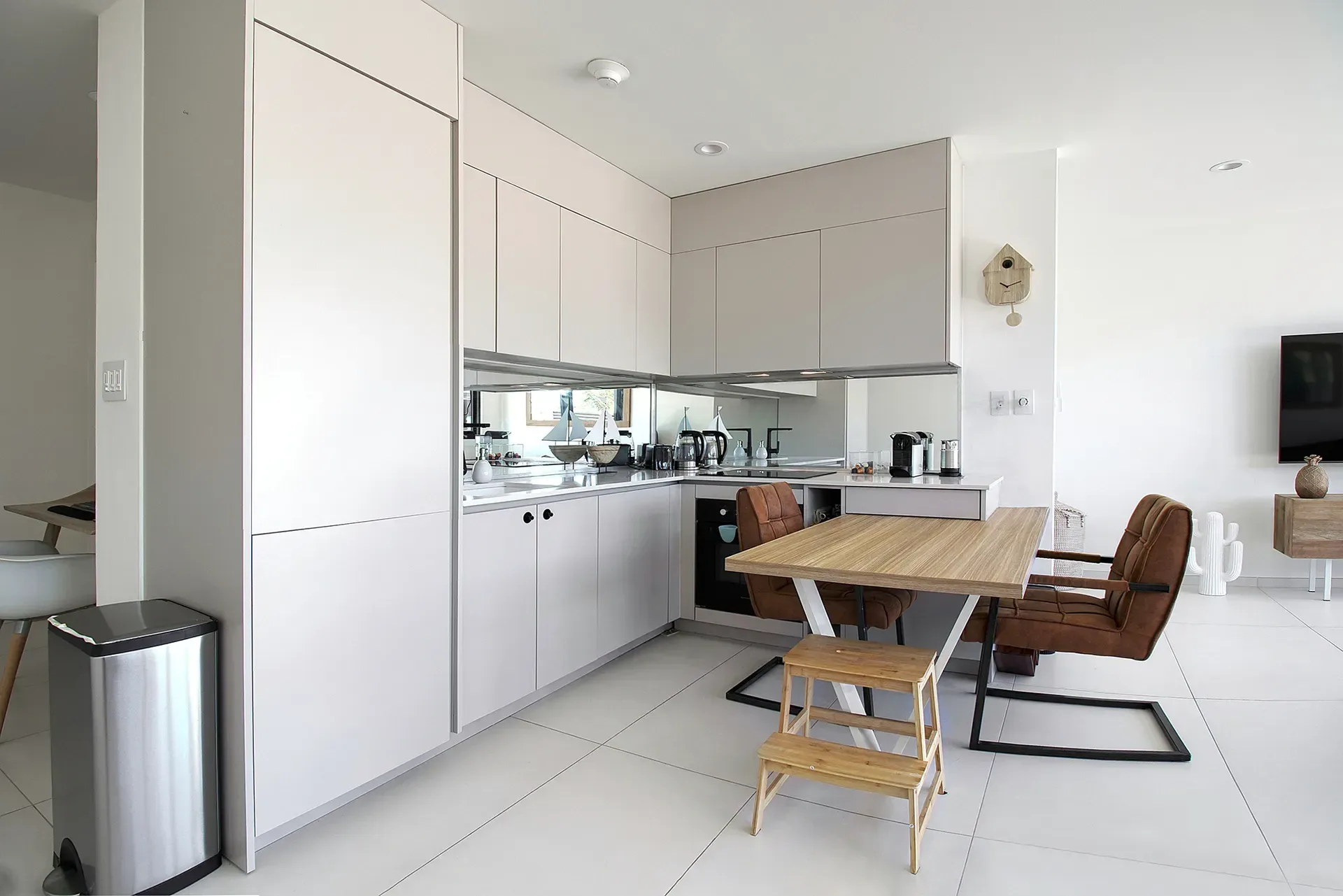 Cuisine entièrement équipée et séjour lumineux offrant un espace convivial pour se détendre ou recevoir des invités.