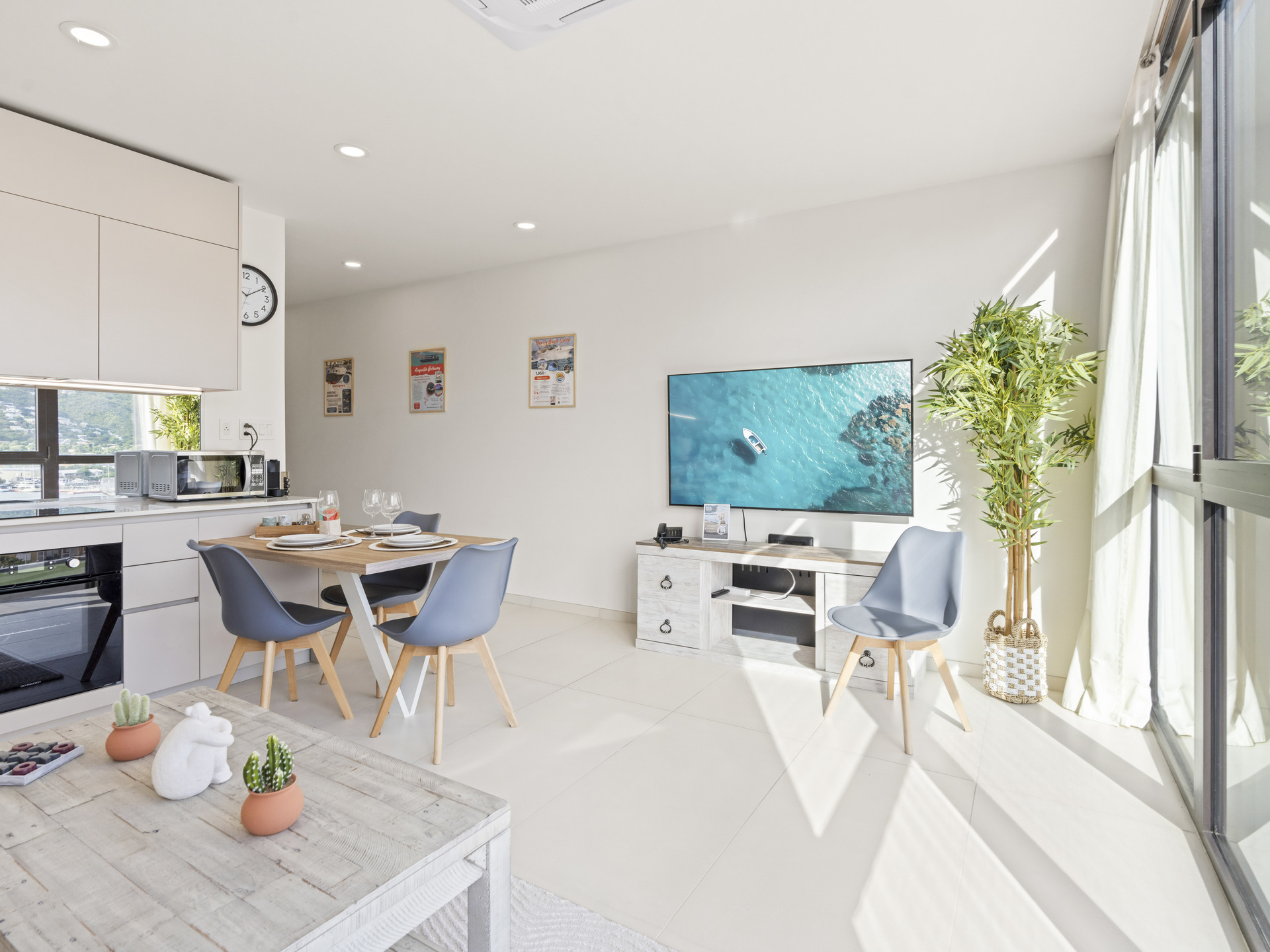 Aménagement lumineux et ouvert, souligné par une lumière naturelle abondante