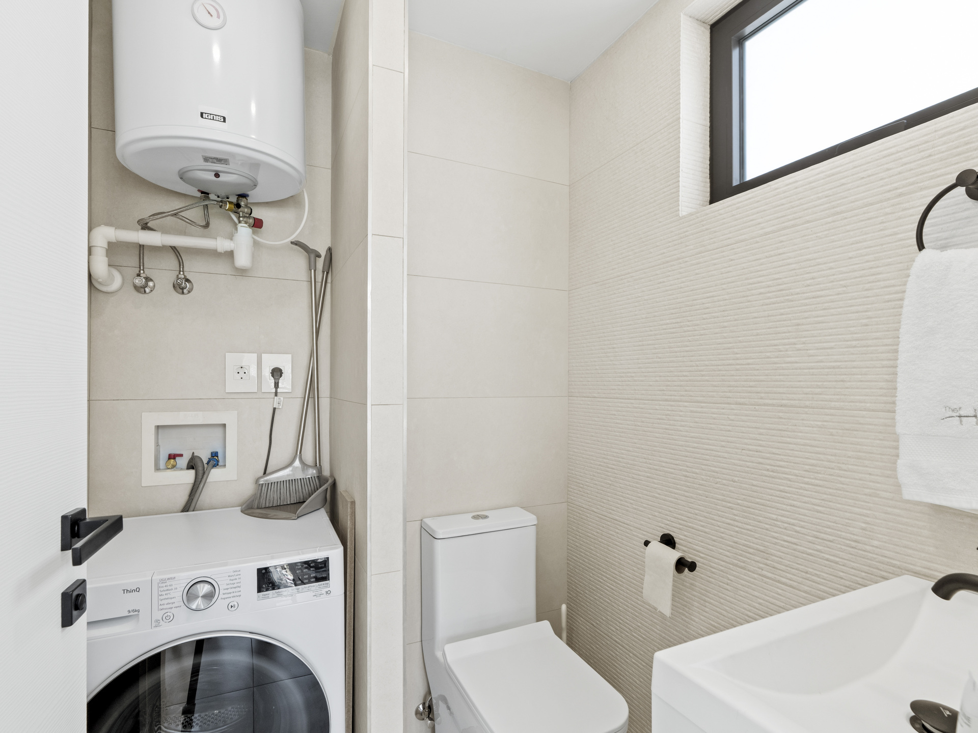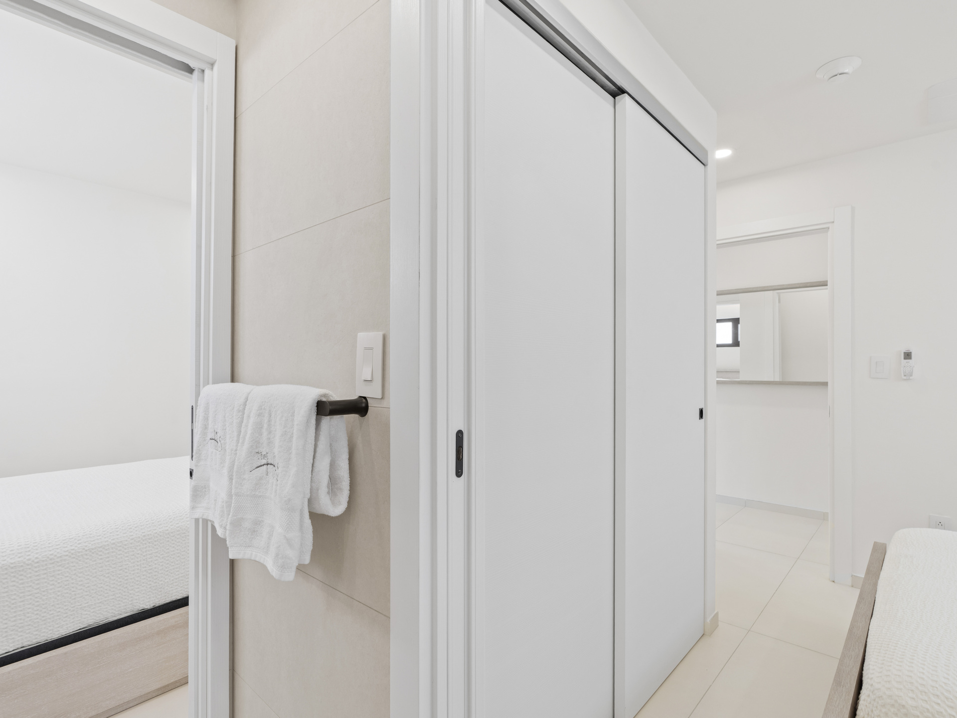 L’appartement dispose de deux chambres confortables reliées par une salle de bains privative, idéale pour les couples, les amis ou les familles voyageant ensemble.