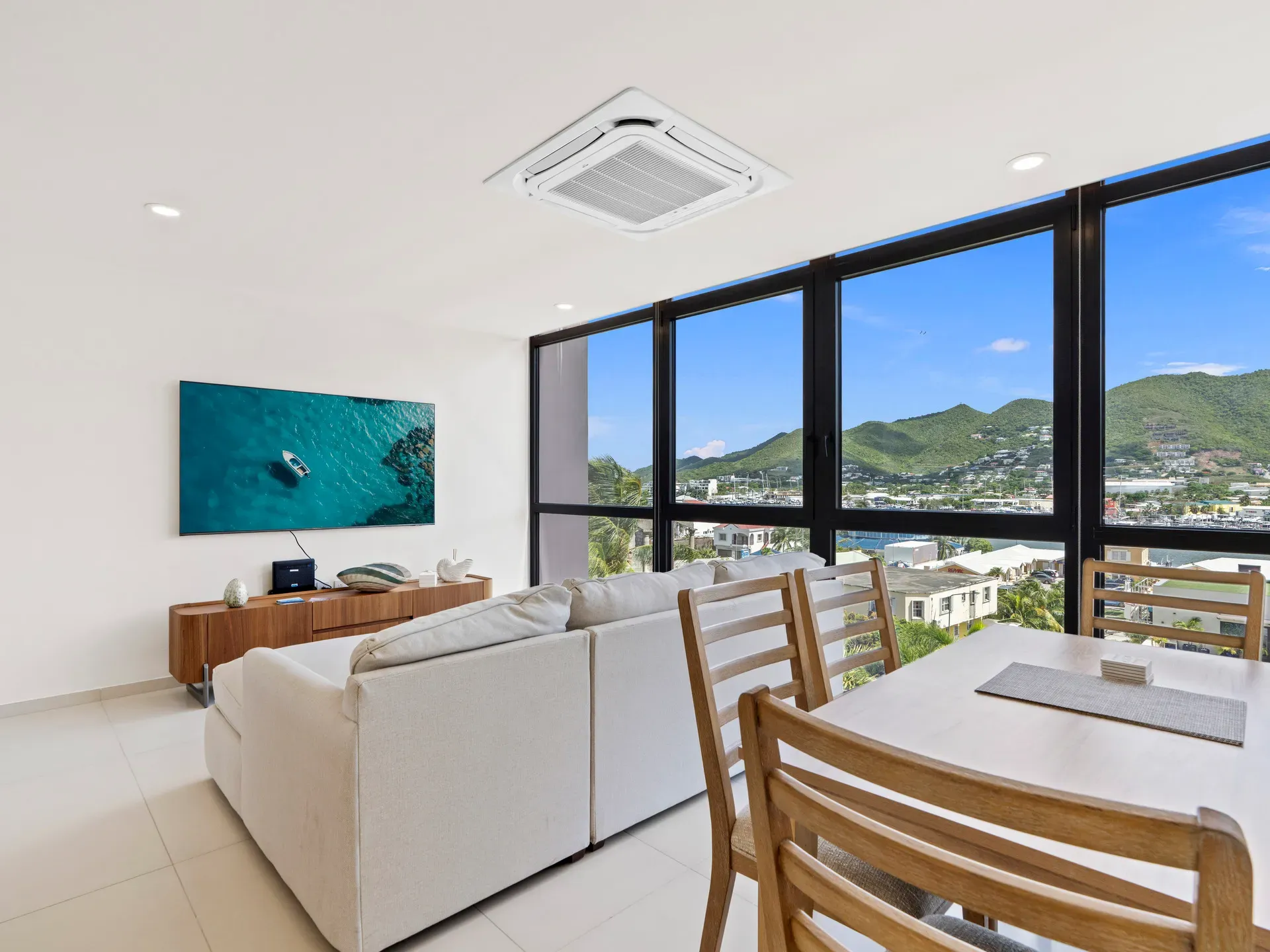 Nous sommes heureux de vous présenter l’Appartement A‑117, un logement confortable de deux chambres situé au premier étage de The Hills Residence à Simpson Bay. Avec ses 75 m² habitables et sa baie vitrée offrant une vue imprenable sur le lagon, cet appartement est idéal pour votre séjour à Sint Maarten.