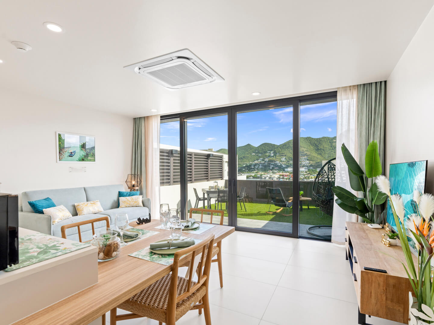 L’Appartement B207 à The Hills Residence à Simpson Bay, Sint Maarten, est un charmant refuge d’une chambre offrant un mélange exquis de confort et de style. L’élément phare de cet appartement est sa magnifique terrasse, qui offre une vue imprenable sur la lagune sereine, créant ainsi un espace parfait pour la détente ou des réunions intimes.