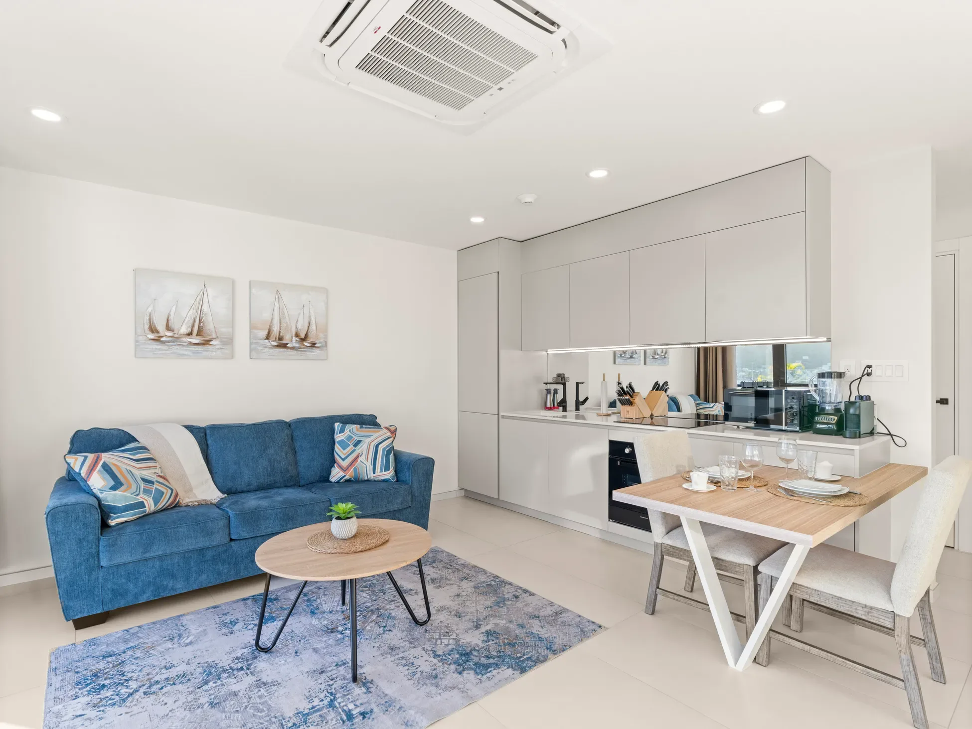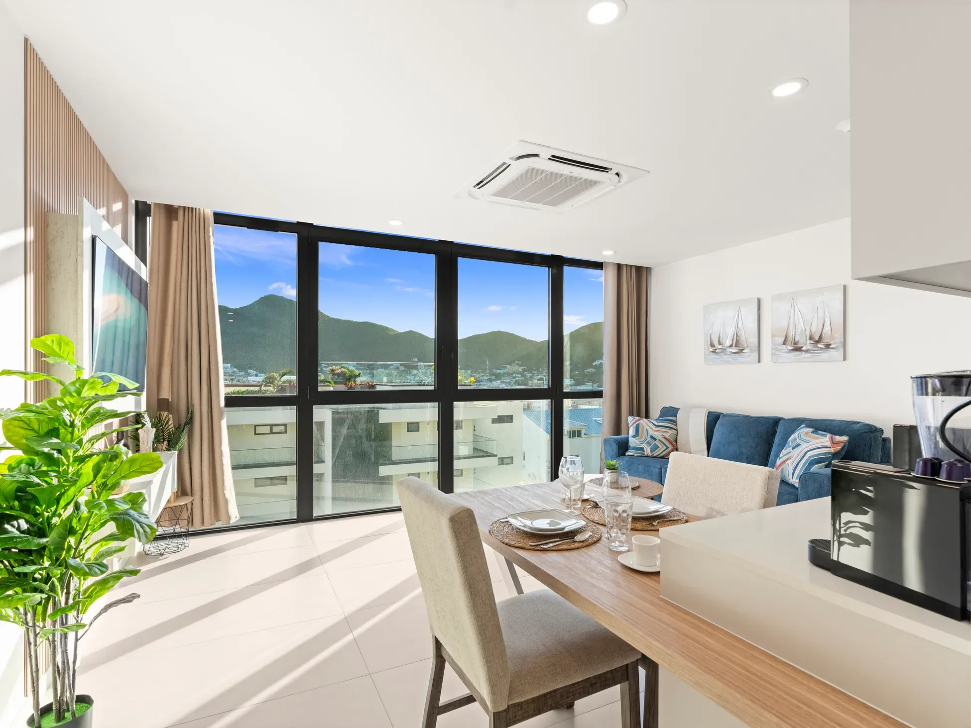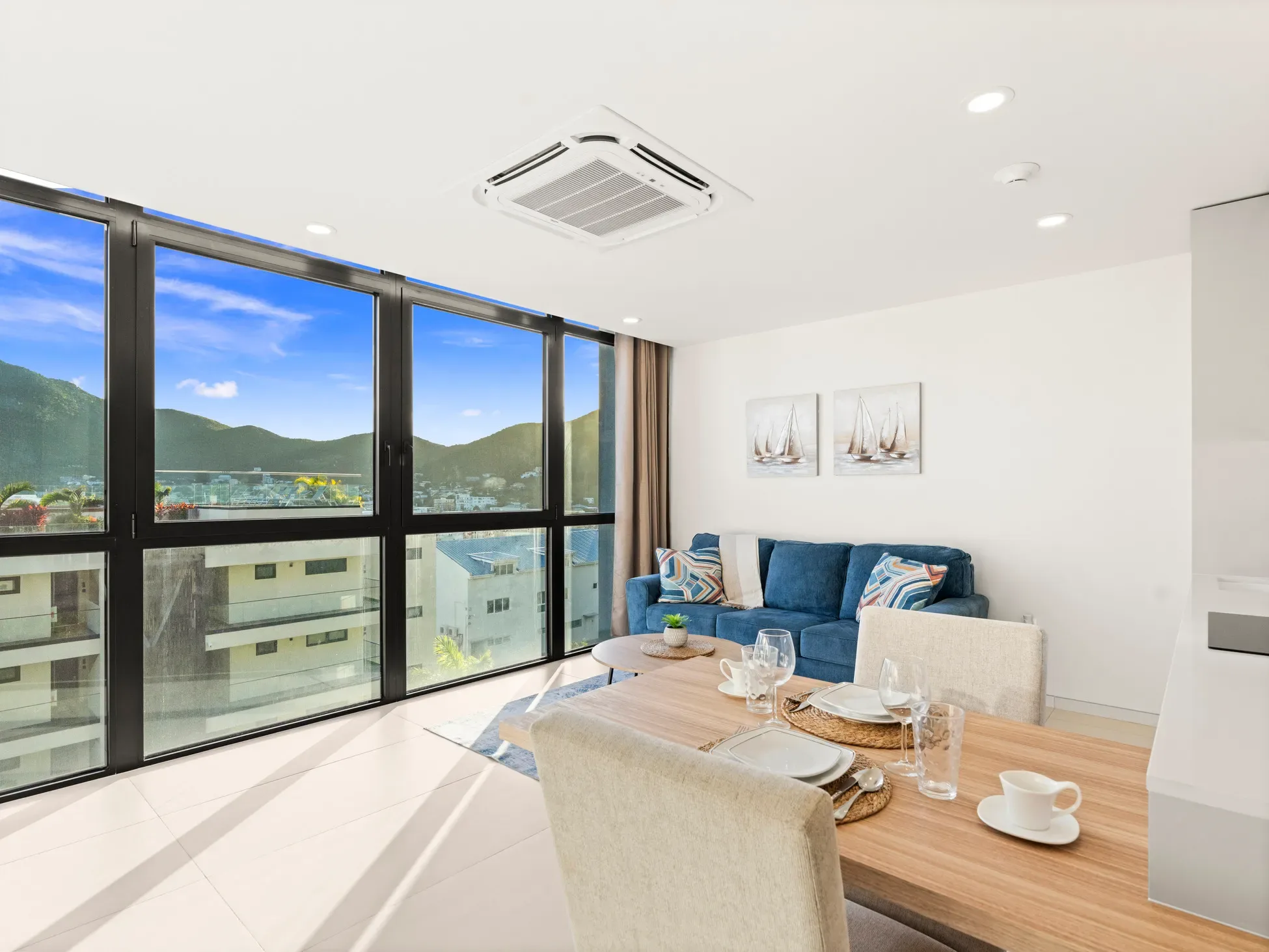 Bienvenue à l’Appartement B‑213 à The Hills Residence, votre escapade distinguée d’une chambre située au premier étage du Bâtiment 2, au cœur vibrant de Simpson Bay, Sint Maarten. Conçu pour fusionner sophistication et confort, l’Appartement B‑213 est un havre serein parfait pour un séjour raffiné jusqu’à trois invités.