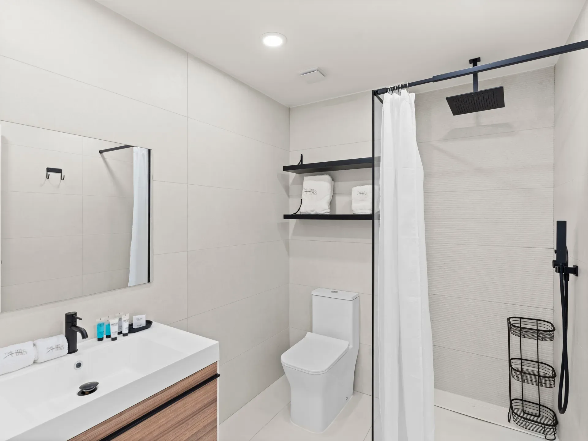 Salle de bain moderne et entièrement équipée pour votre confort quotidien.