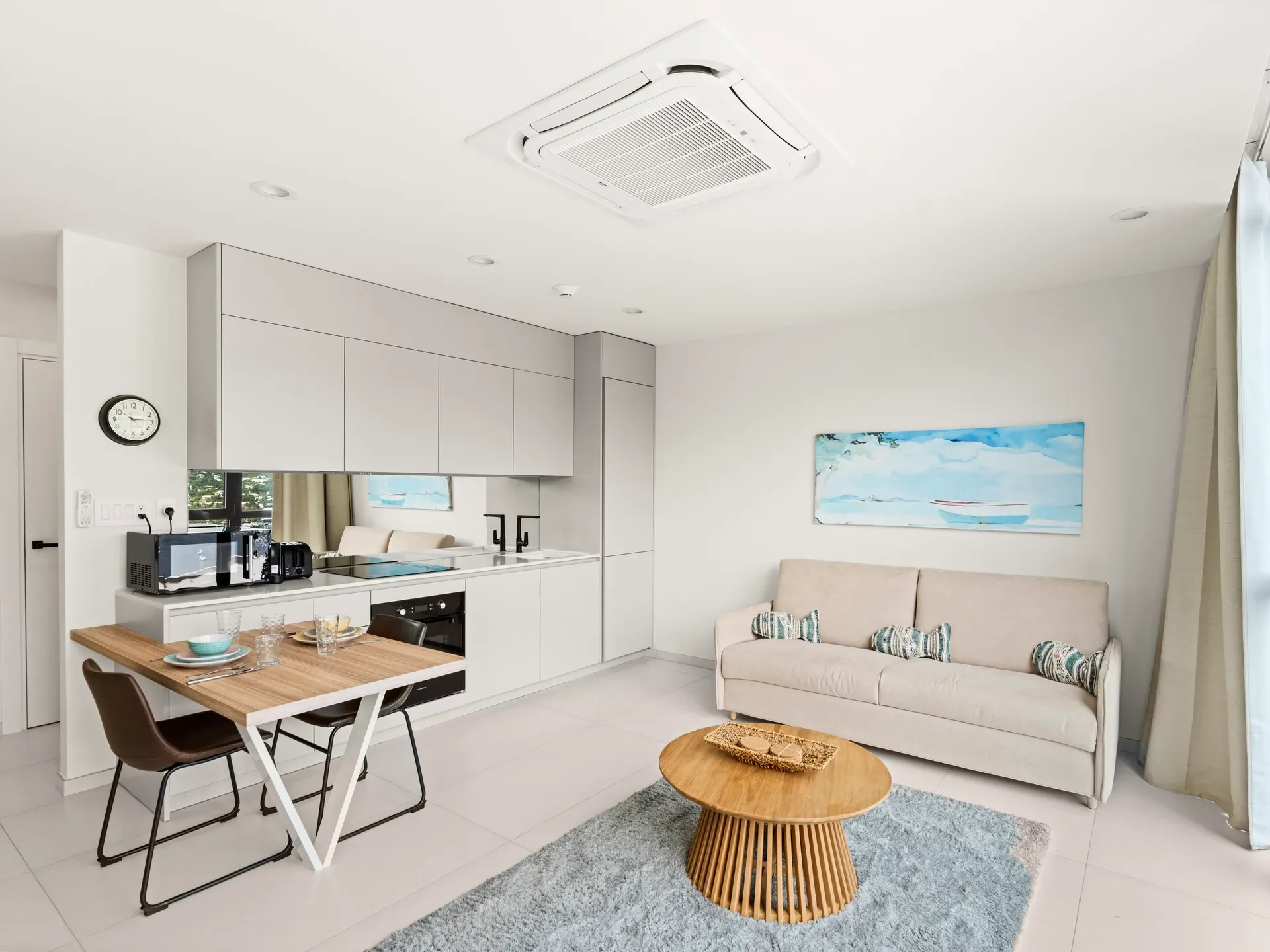 - Cuisine entièrement équipée avec réfrigérateur, four, lave-vaisselle, grille-pain et machine Nespresso — tout ce dont vous avez besoin pour préparer et savourer vos repas.