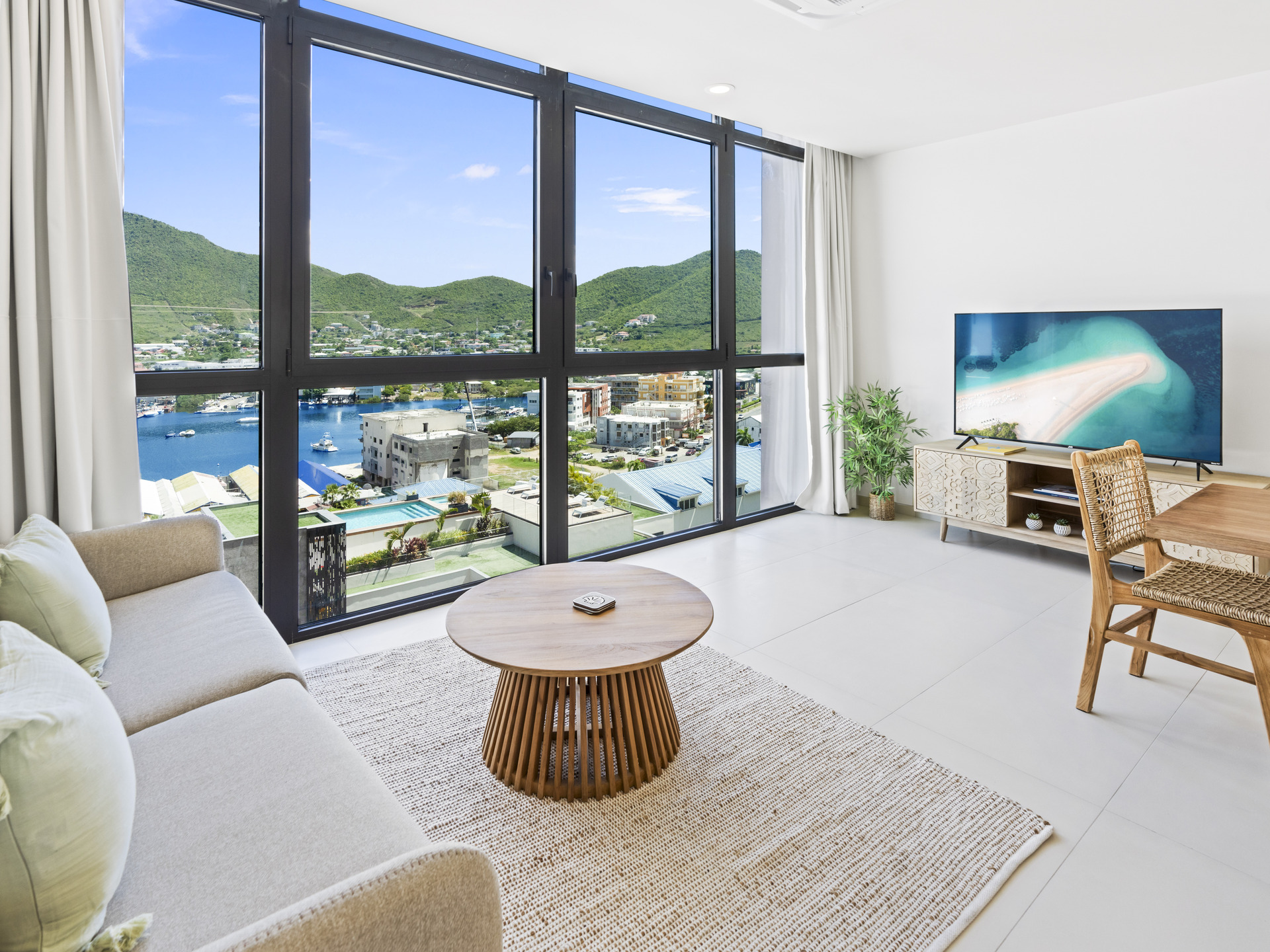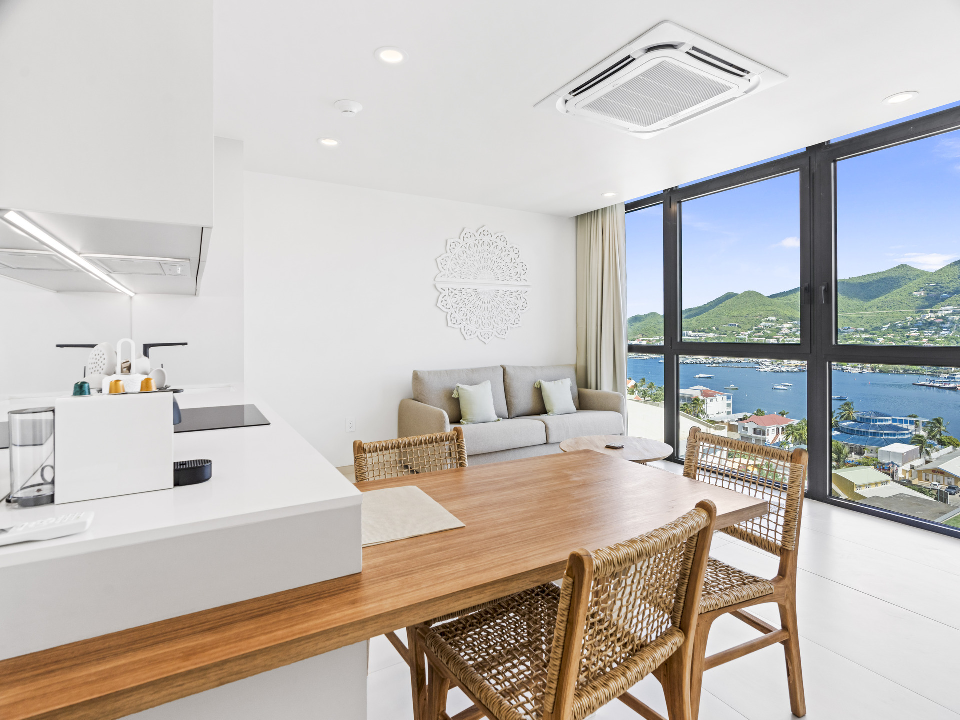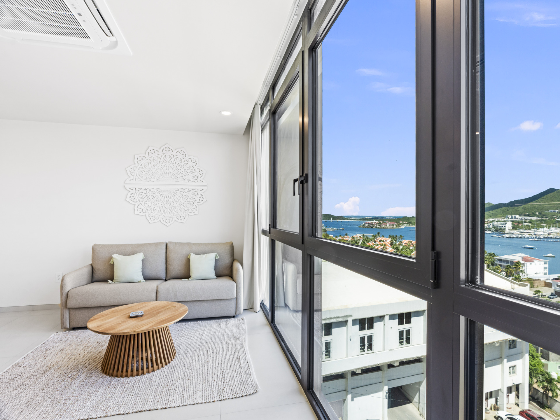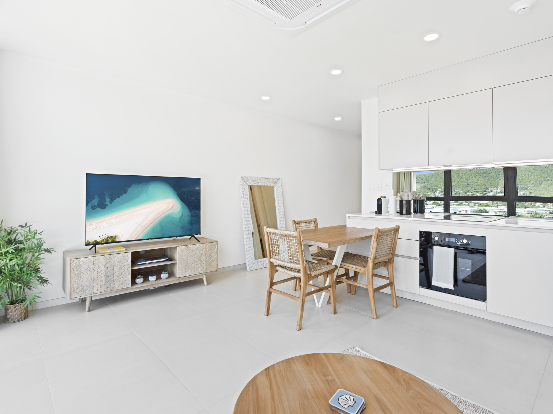 Bienvenue dans ce magnifique appartement d’une chambre au The Hills Residence à Simpson Bay, Sint-Maarten ! Situé au 4ᵉ étage, il offre une vue spectaculaire sur la lagune. En entrant, vous découvrirez un appartement chaleureux et soigneusement conçu pour vous offrir confort et commodité. L’espace de vie a été décoré avec goût avec des meubles modernes, créant une ambiance élégante et contemporaine.