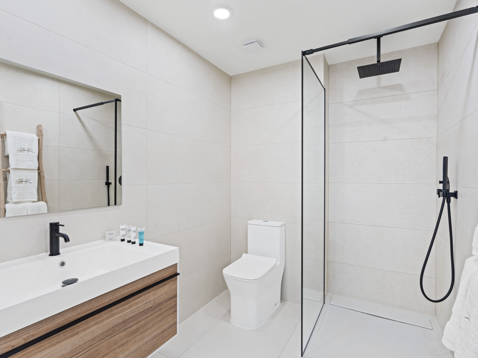 Salle de bain moderne et entièrement équipée pour votre confort.