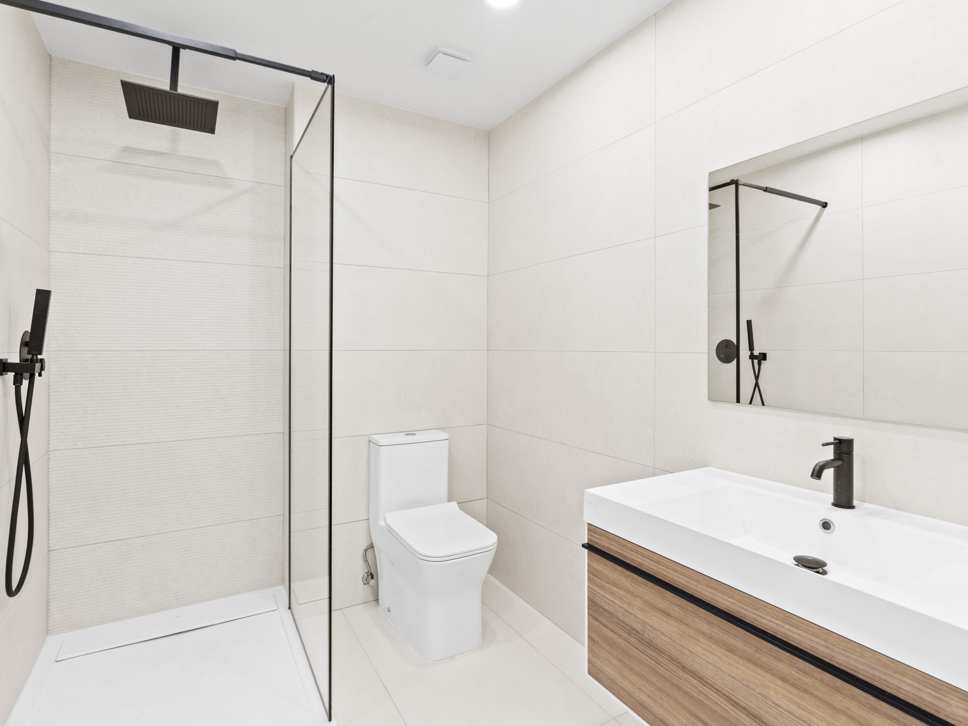 Salle de bain moderne pensée pour le style et la praticité, offrant un véritable espace de relaxation.