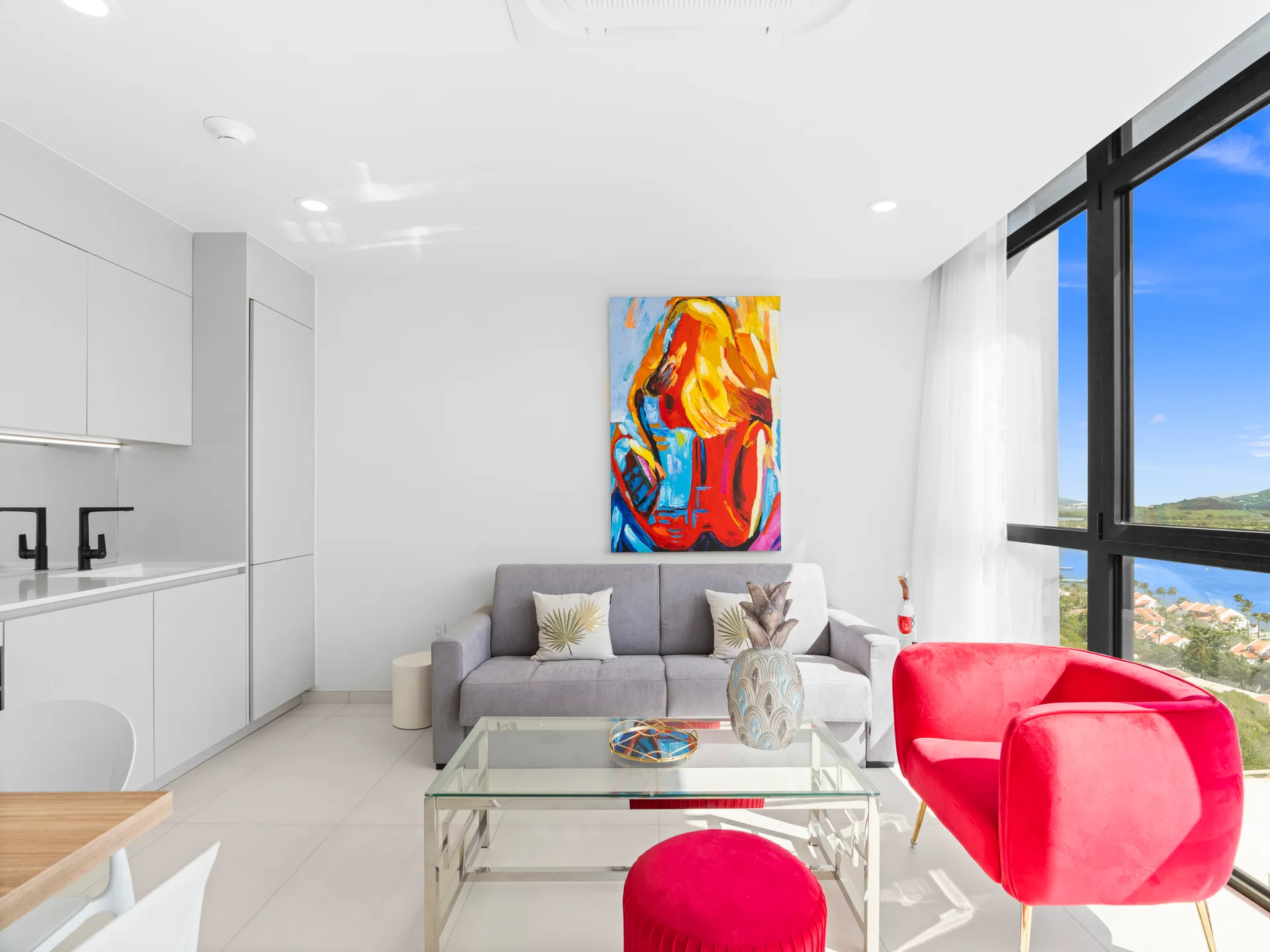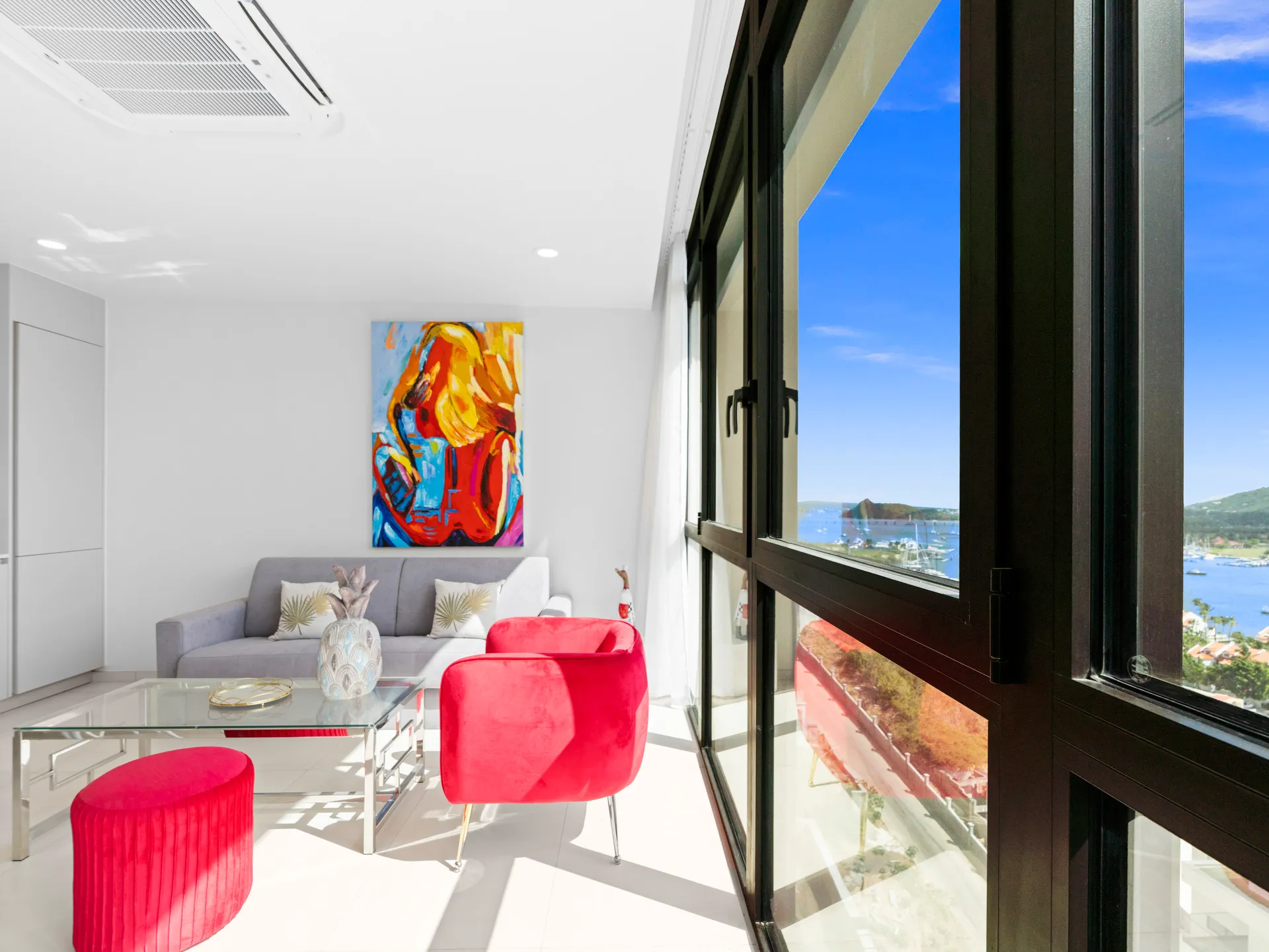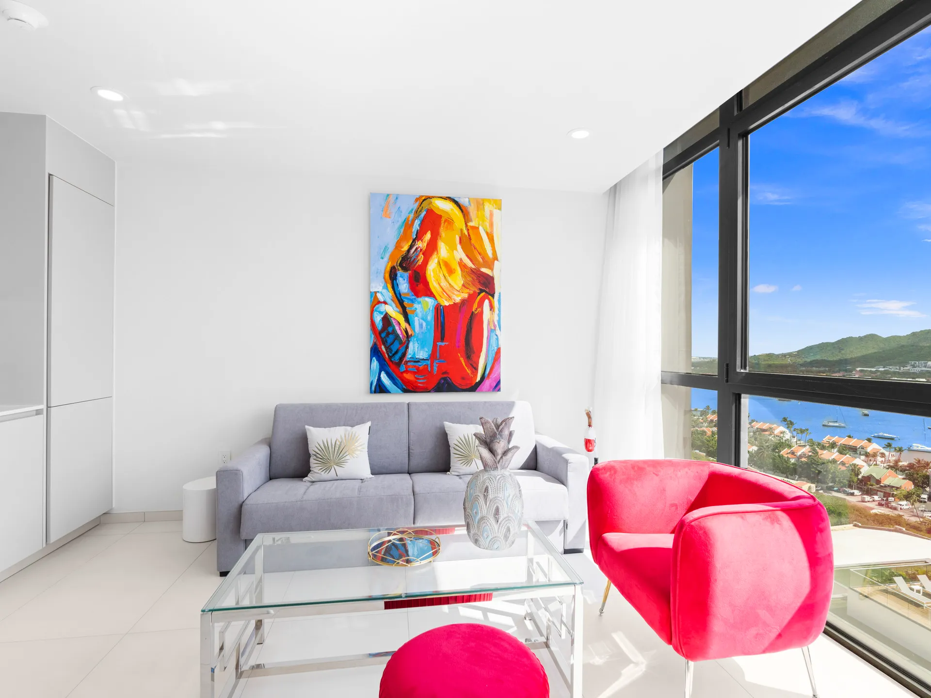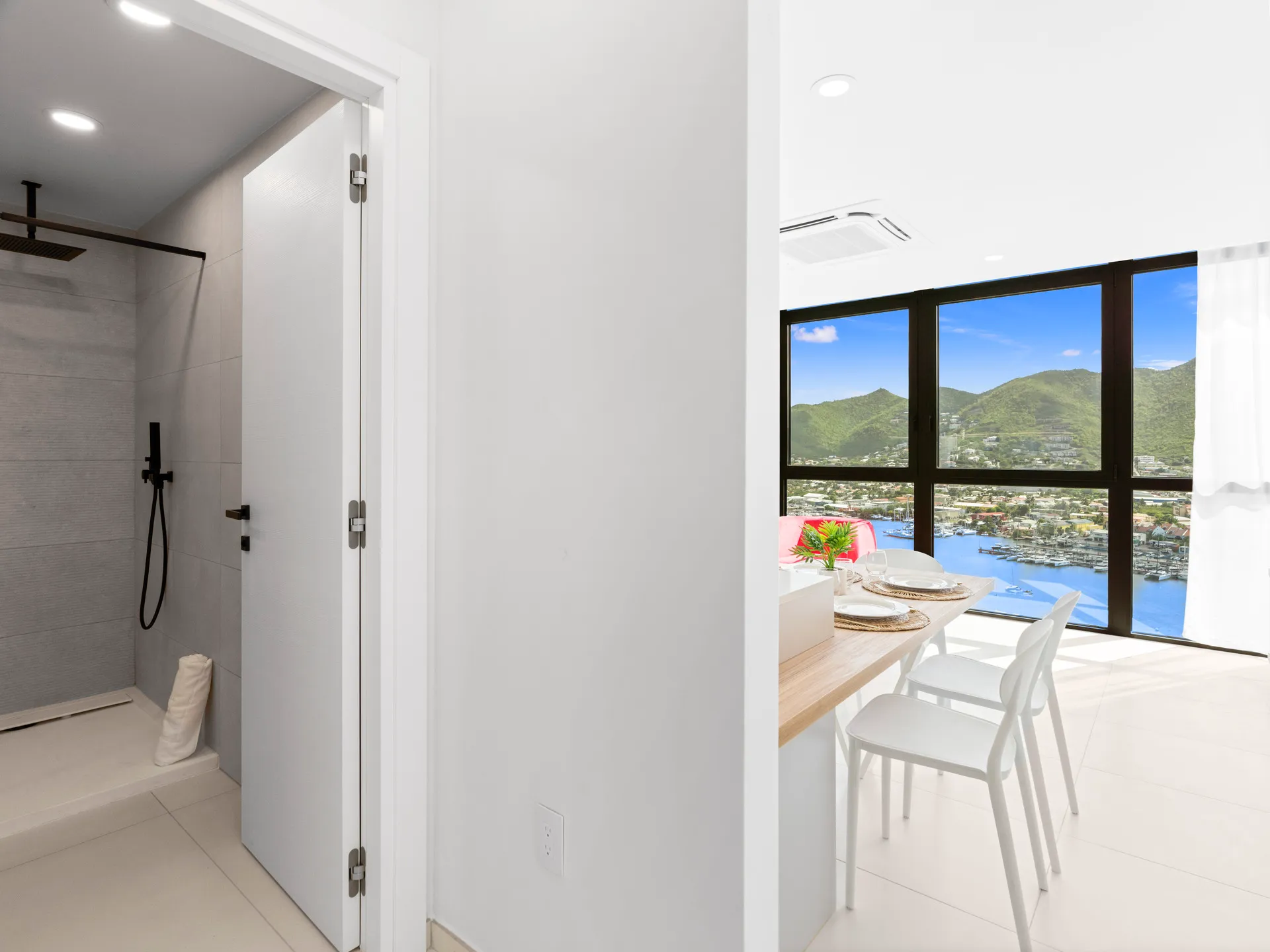 Perché au dernier étage du Bâtiment 3, l’appartement C-355 offre un luxe inégalé avec vue panoramique sur le lagon de Simpson Bay. Ce magnifique appartement d’une chambre allie sophistication moderne et confort ultime, en faisant le refuge parfait pour la détente et le ressourcement.
