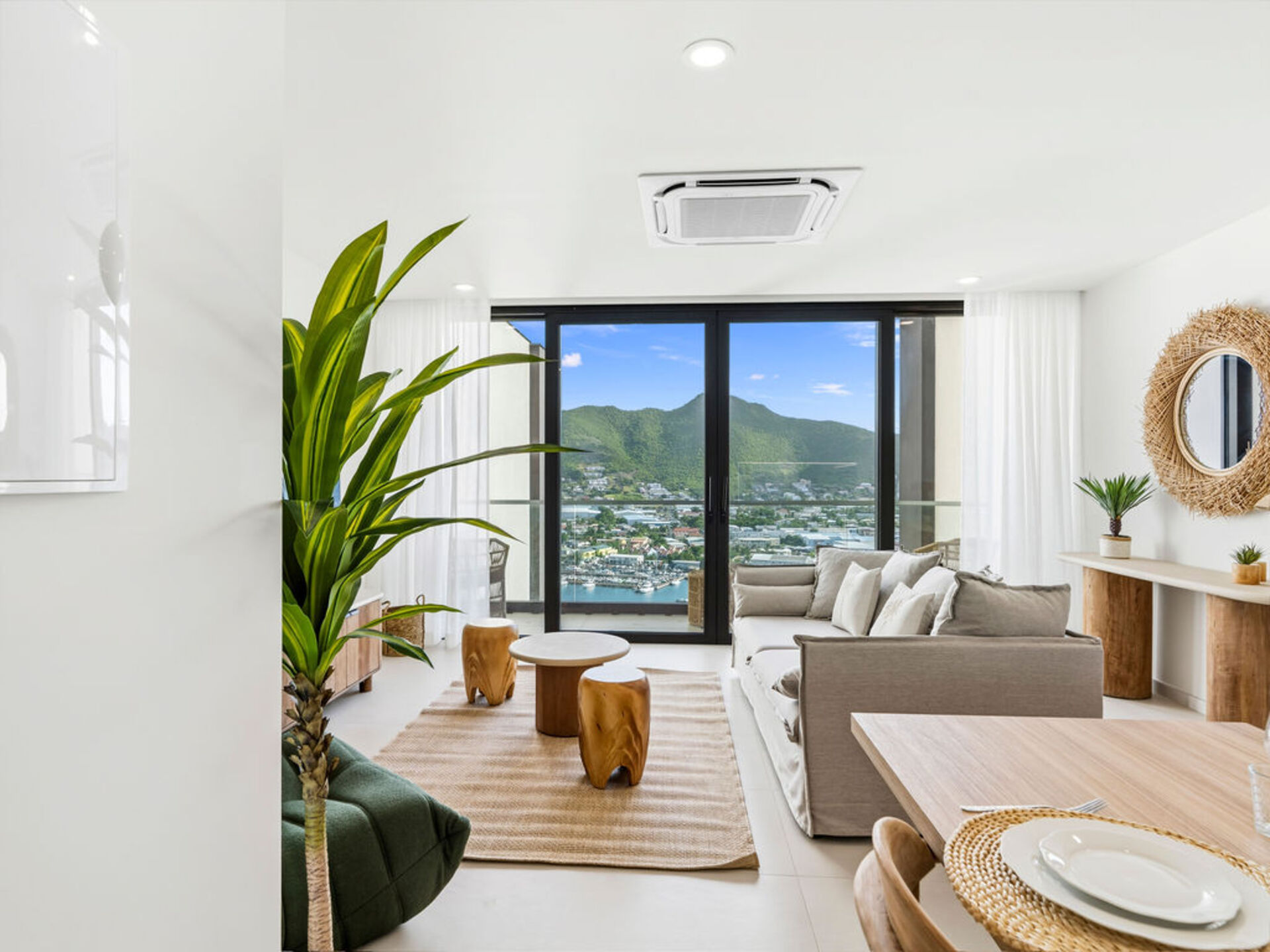 Situé dans le bâtiment 4 au quatrième étage, l’Appartement 442 offre un espace élégant et confortable avec une chambre, une salle de bain et un balcon privé avec une superbe vue sur le lagon de Simpson Bay — idéal pour un séjour relaxant et dépaysant.