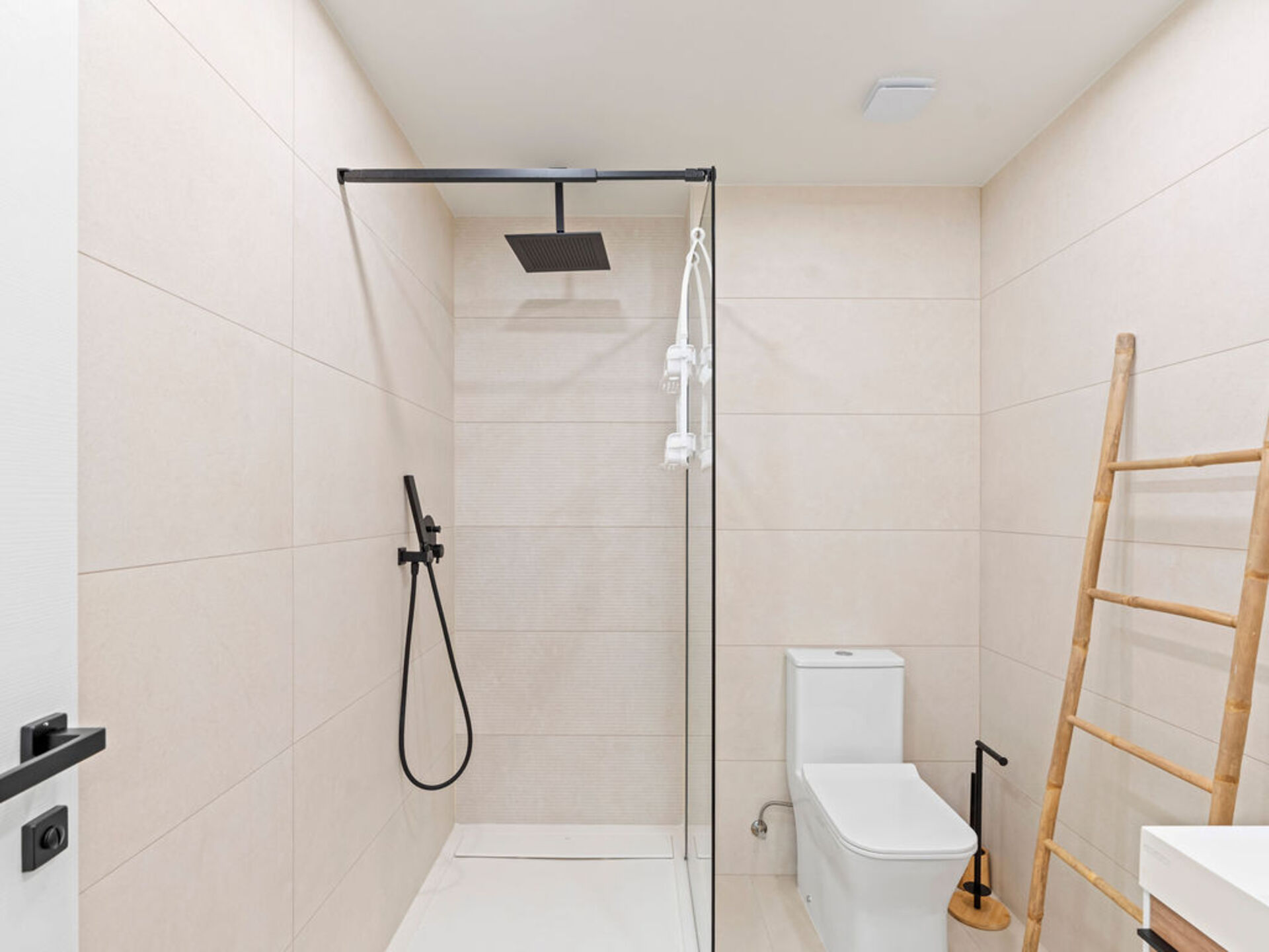 Salle de bain moderne avec tout le confort nécessaire.