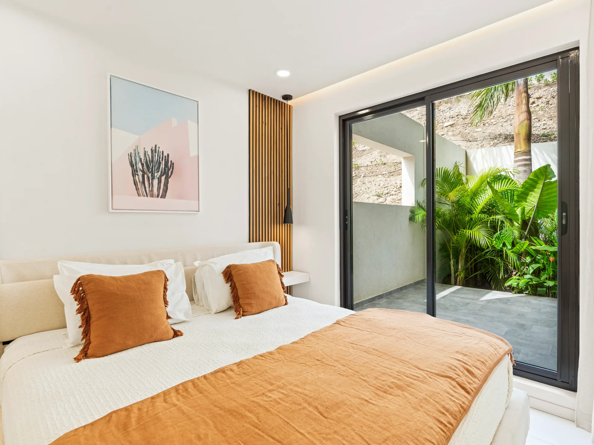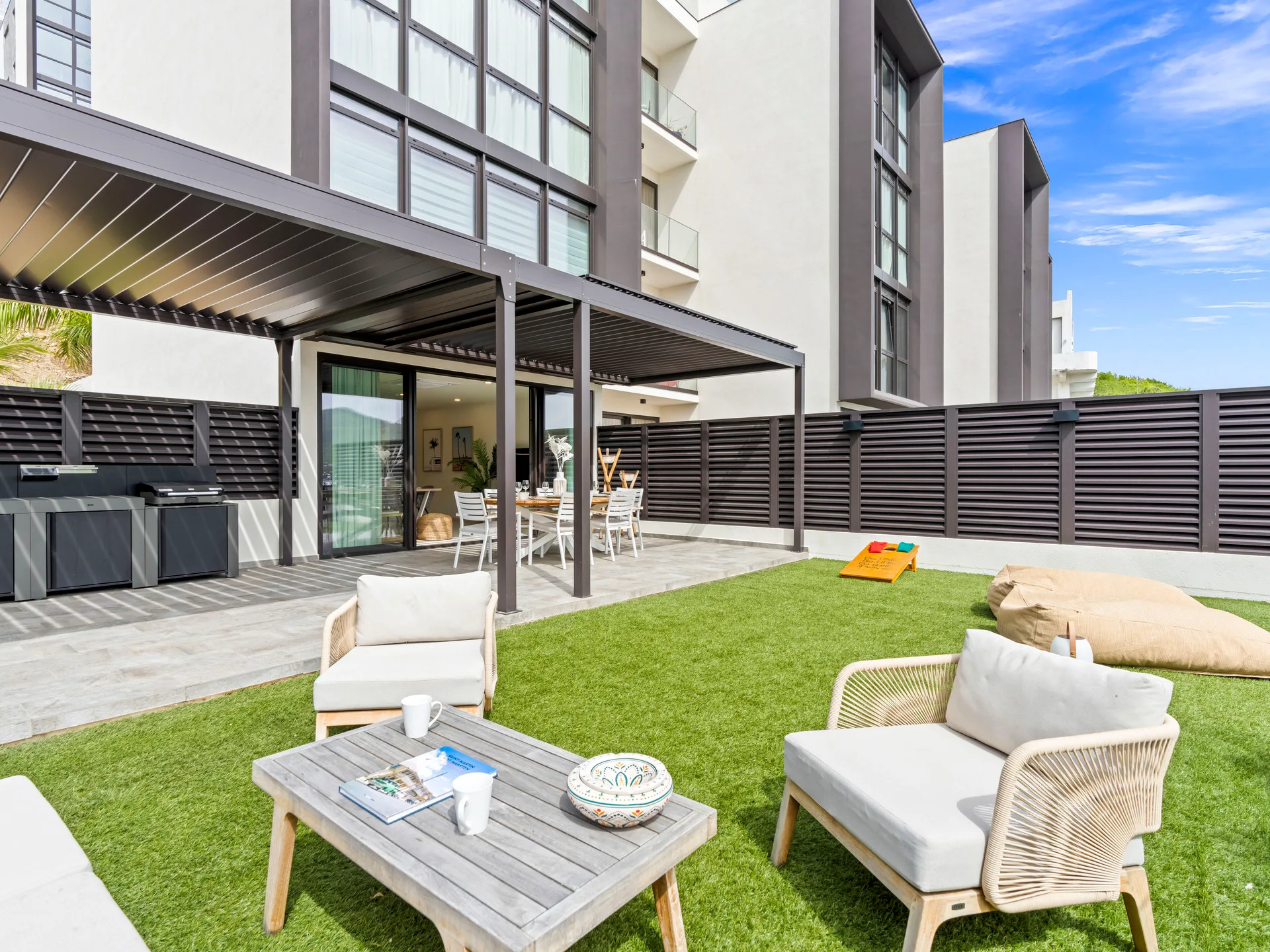 A welcoming living area, ideal for unwinding or enjoying quality time. Step outside to your private garden, a tranquil space perfect for morning coffee, outdoor dining, or simply soaking up the fresh air.