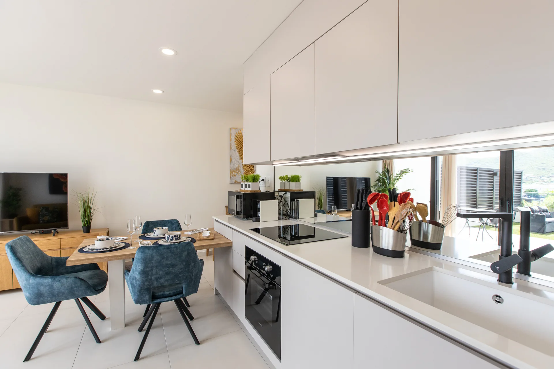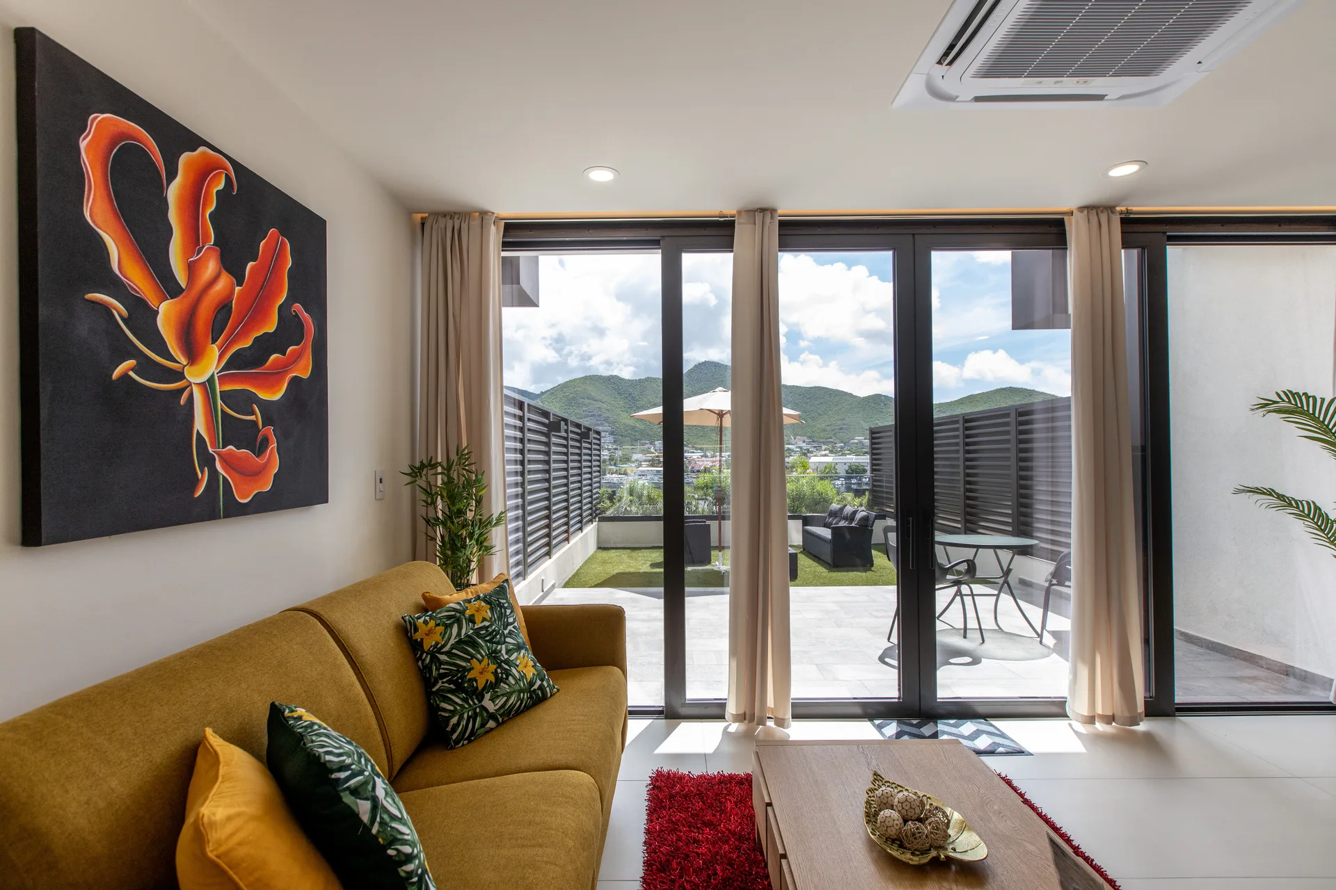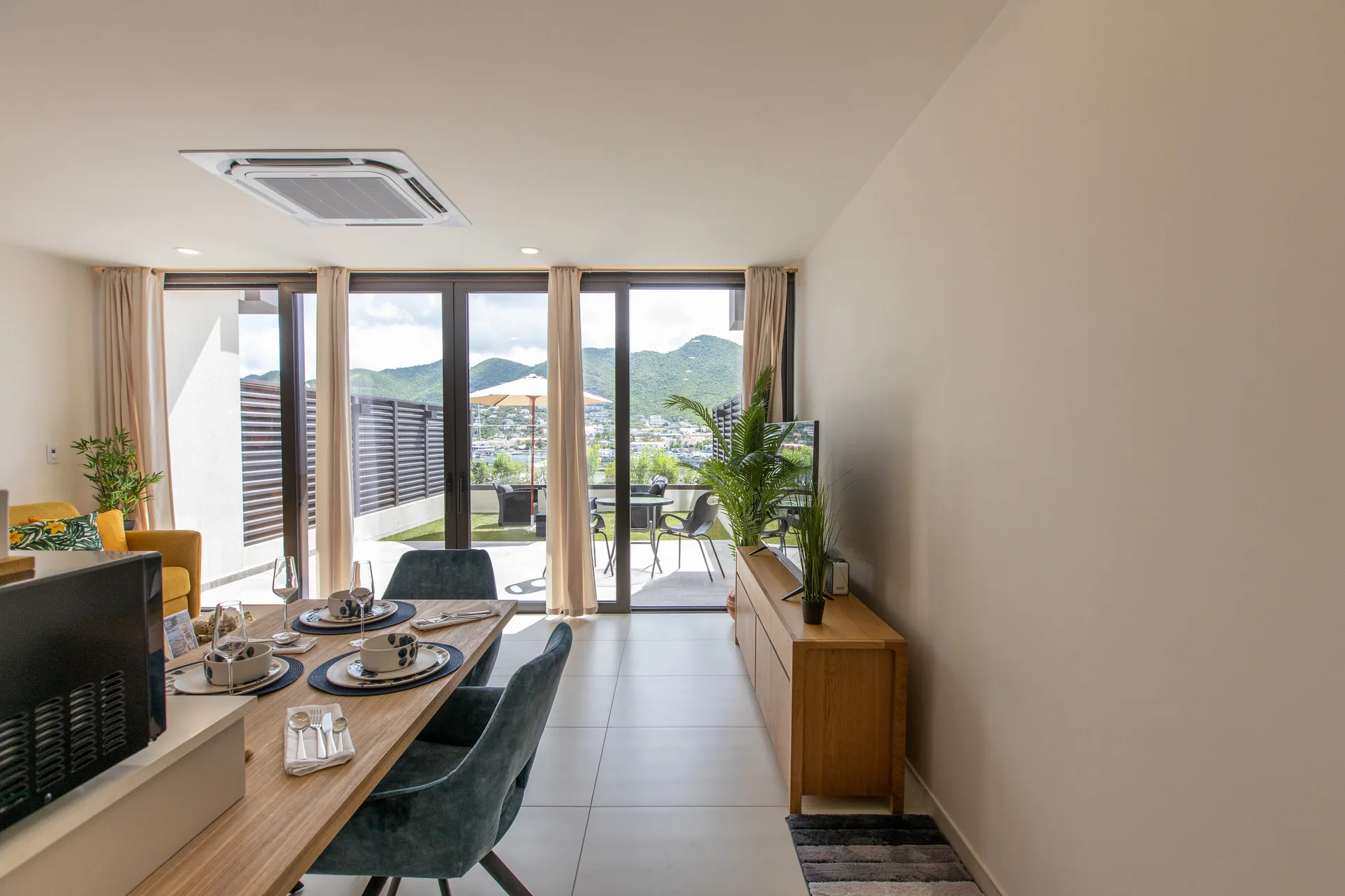 Enjoy a warm and welcoming living area, ideal for relaxing or spending quality time. Step outside to your private terrace, a peaceful outdoor space perfect for morning coffee, al fresco dining, or simply enjoying the fresh island air.