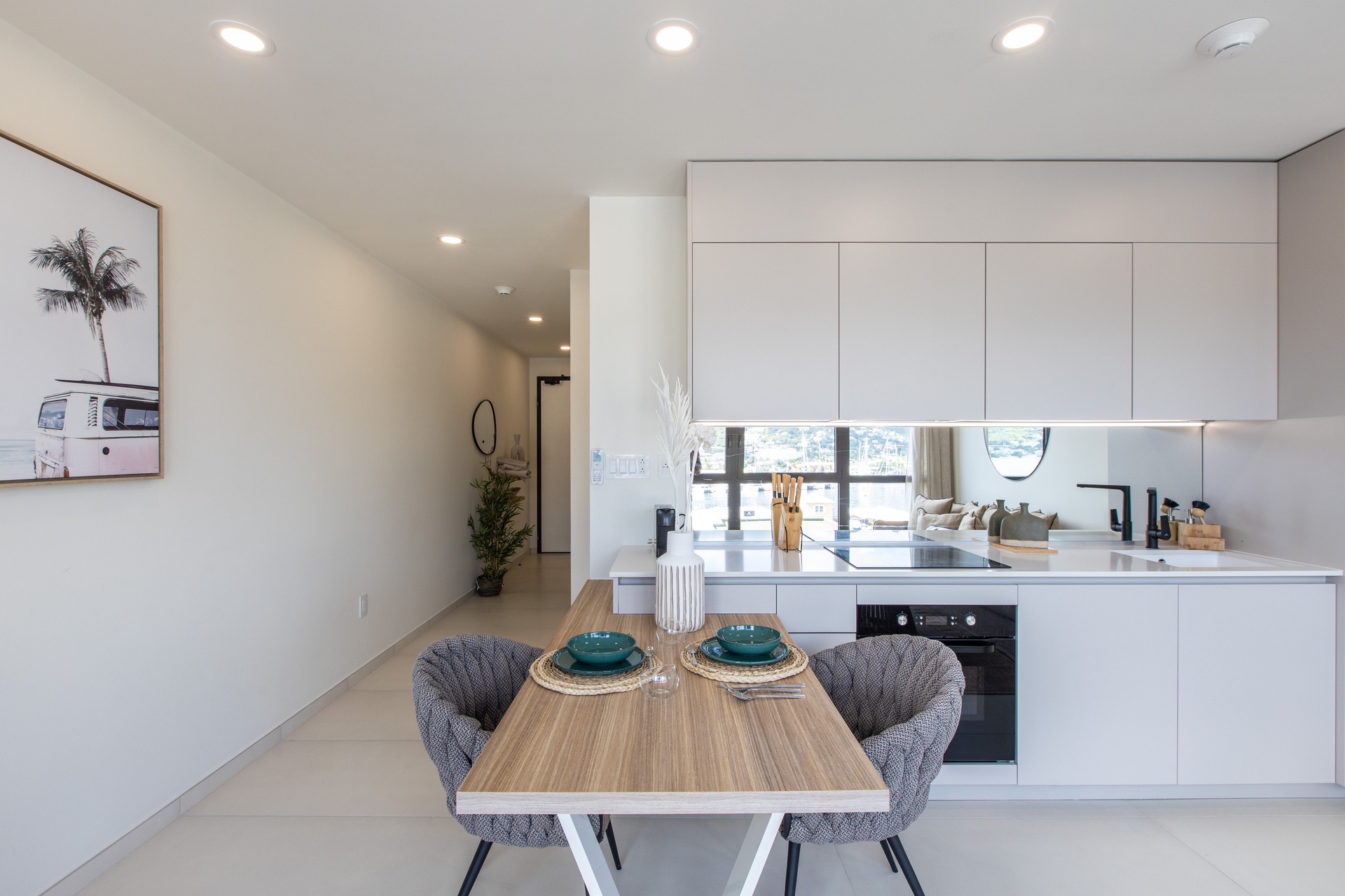 Bright open layout flooded with natural light thanks to floor‑to‑ceiling windows
