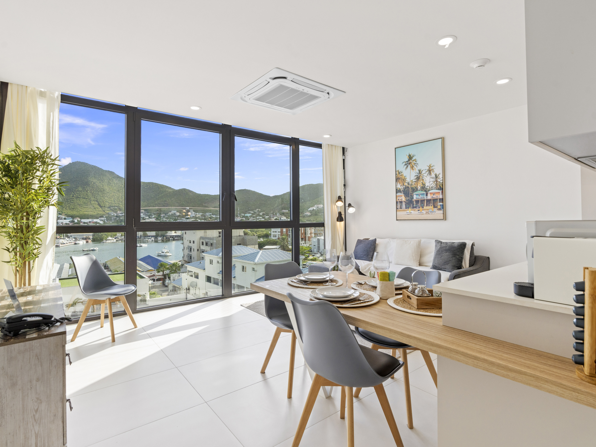 Situated in the vibrant heart of Simpson Bay, Apartment A123 places you just minutes from beach bars, upscale dining, boutique shopping and lively nightlife. Whether you’re exploring the turquoise waters by paddle‑board, enjoying seaside cocktails or simply strolling the vibrant marina, everything Sint Maarten offers is within reach. The Hills Residence gives you access to the best of island life and a tranquil retreat all in one.