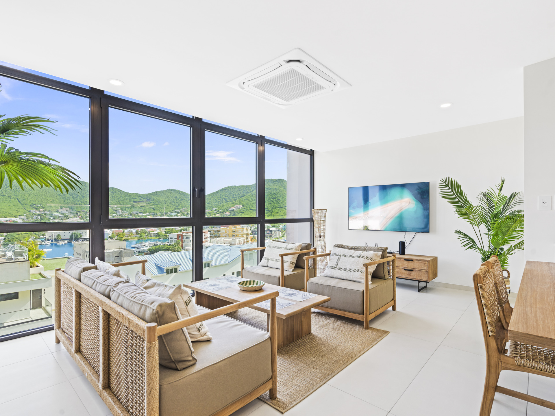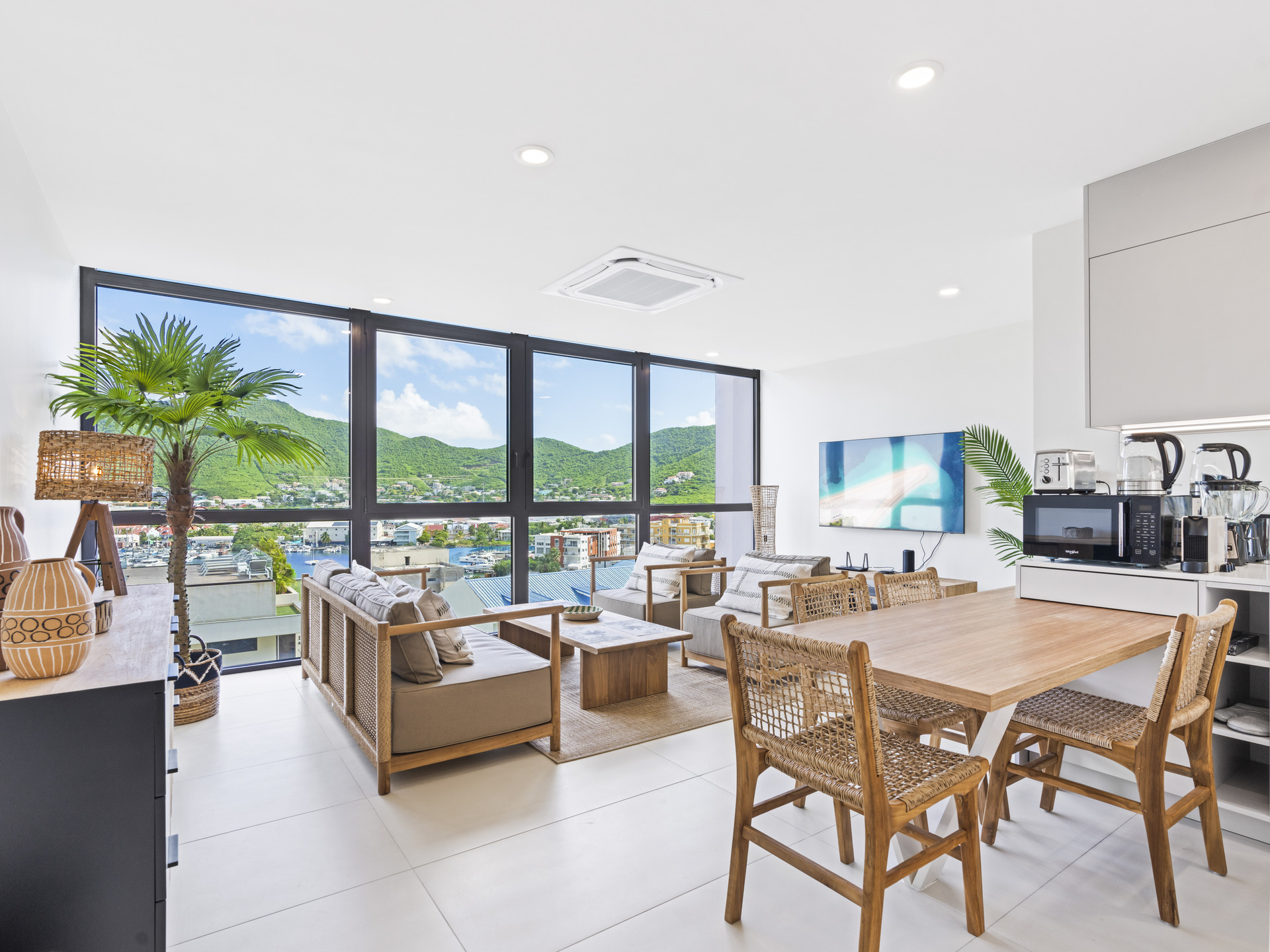 The fully equipped kitchen will allow you to prepare delicious meals that you can enjoy while overlooking the beautiful Simpson Bay lagoon. It is the ideal place to relax and recharge your batteries.