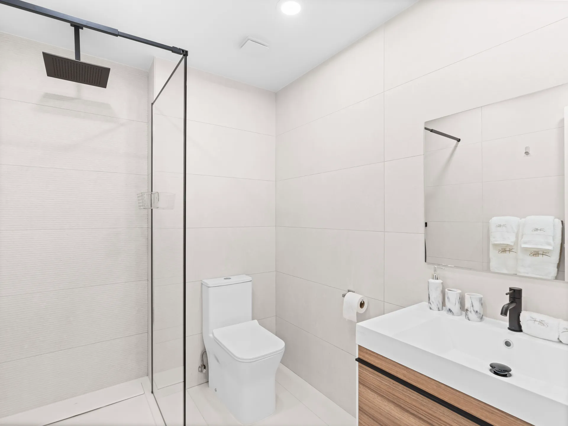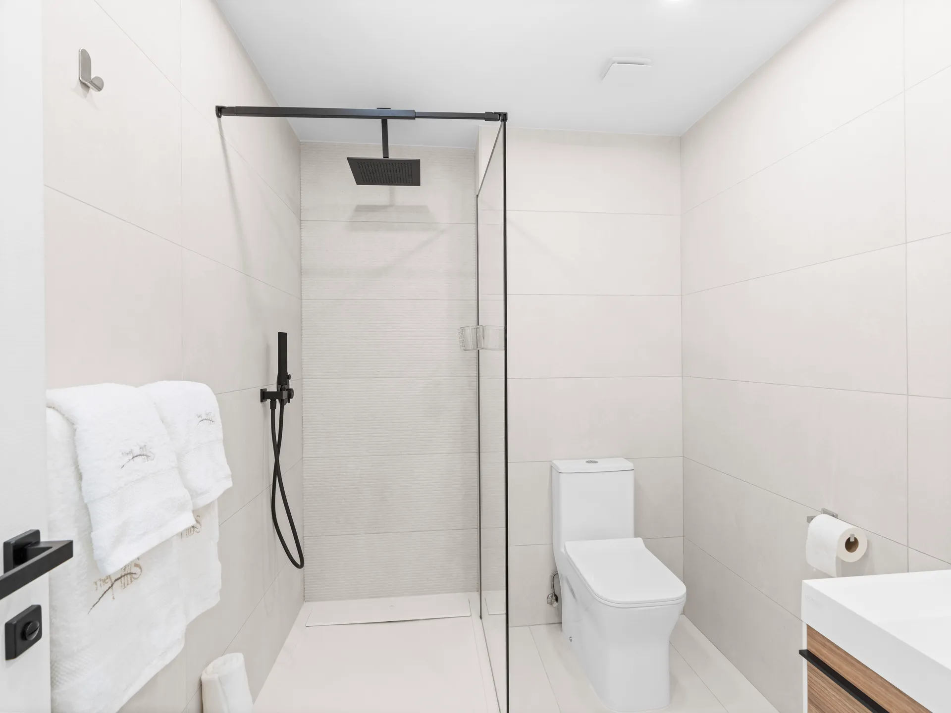 Modern and fully equipped bathroom, offering convenience and comfort during your stay.
