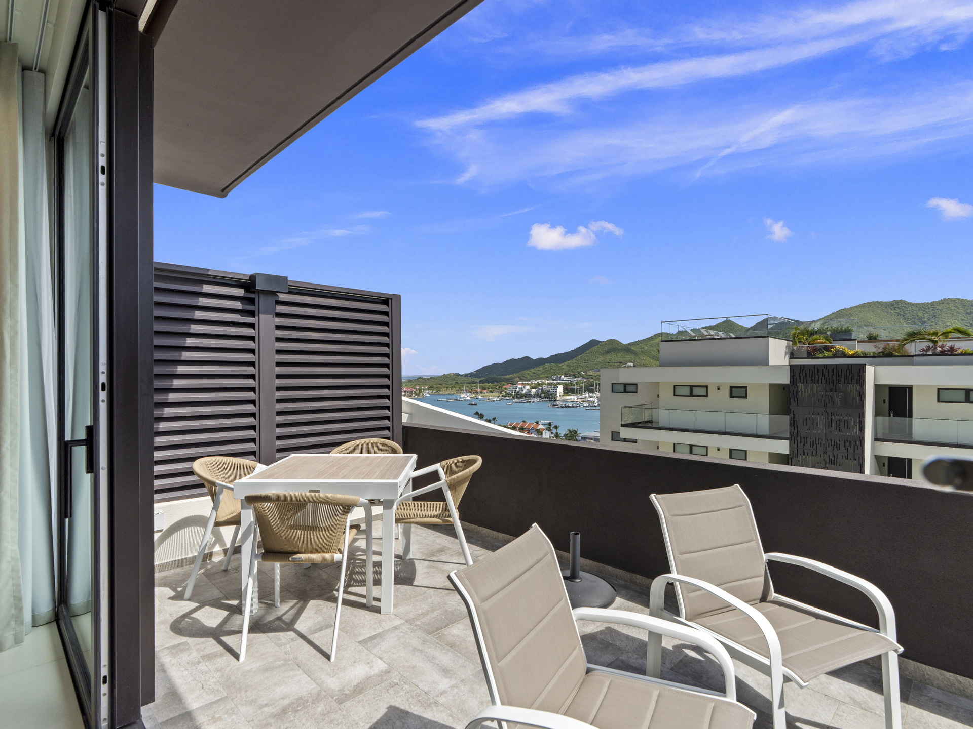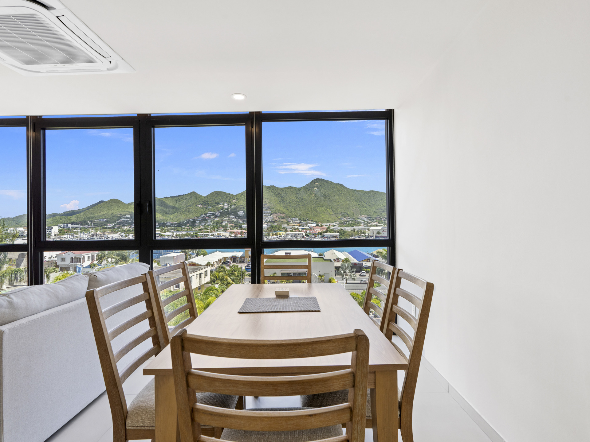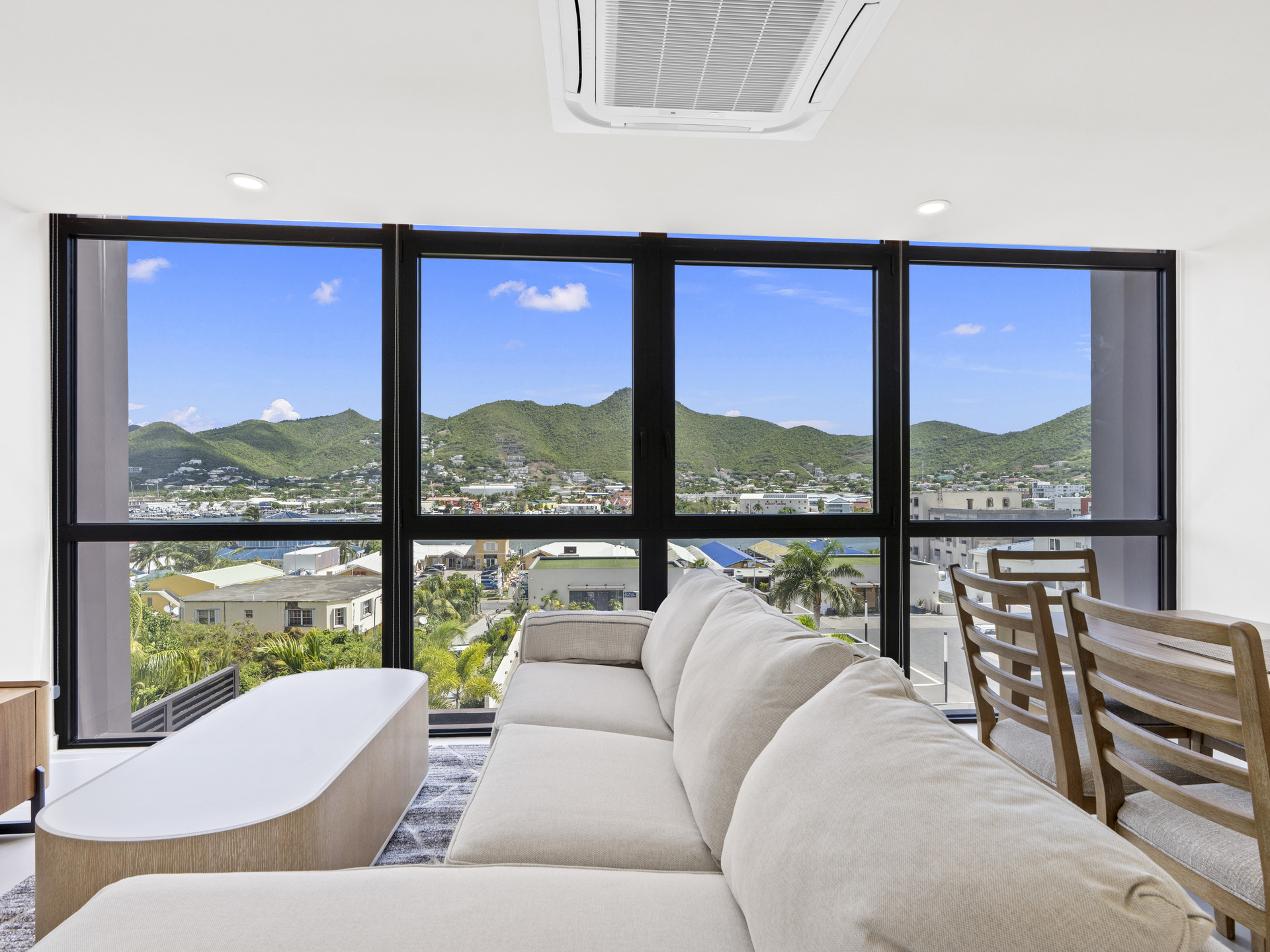 Step into this amazing two-bedroom, two-bathroom corner suite, perfectly designed to combine modern comfort with effortless elegance. Located on the ground floor of Building 3, this residence offers the convenience of easy access while still delivering stunning, panoramic views of the ocean, Anguilla, the lagoon, and the lush surrounding mountains.