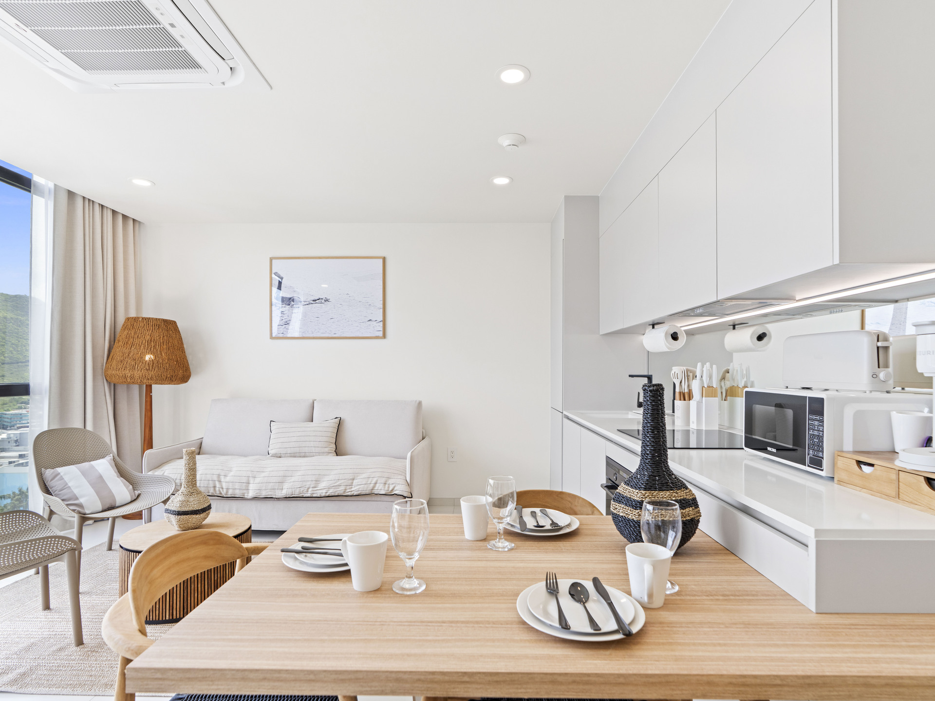 As a guest, enjoy access to The Hills Residence’s rooftop pool and jacuzzi, where you can relax and take in panoramic views of the island. The secure, gated complex also offers on-site parking and a prime location just minutes from beaches, restaurants, shops, the marina, and lively nightlife.