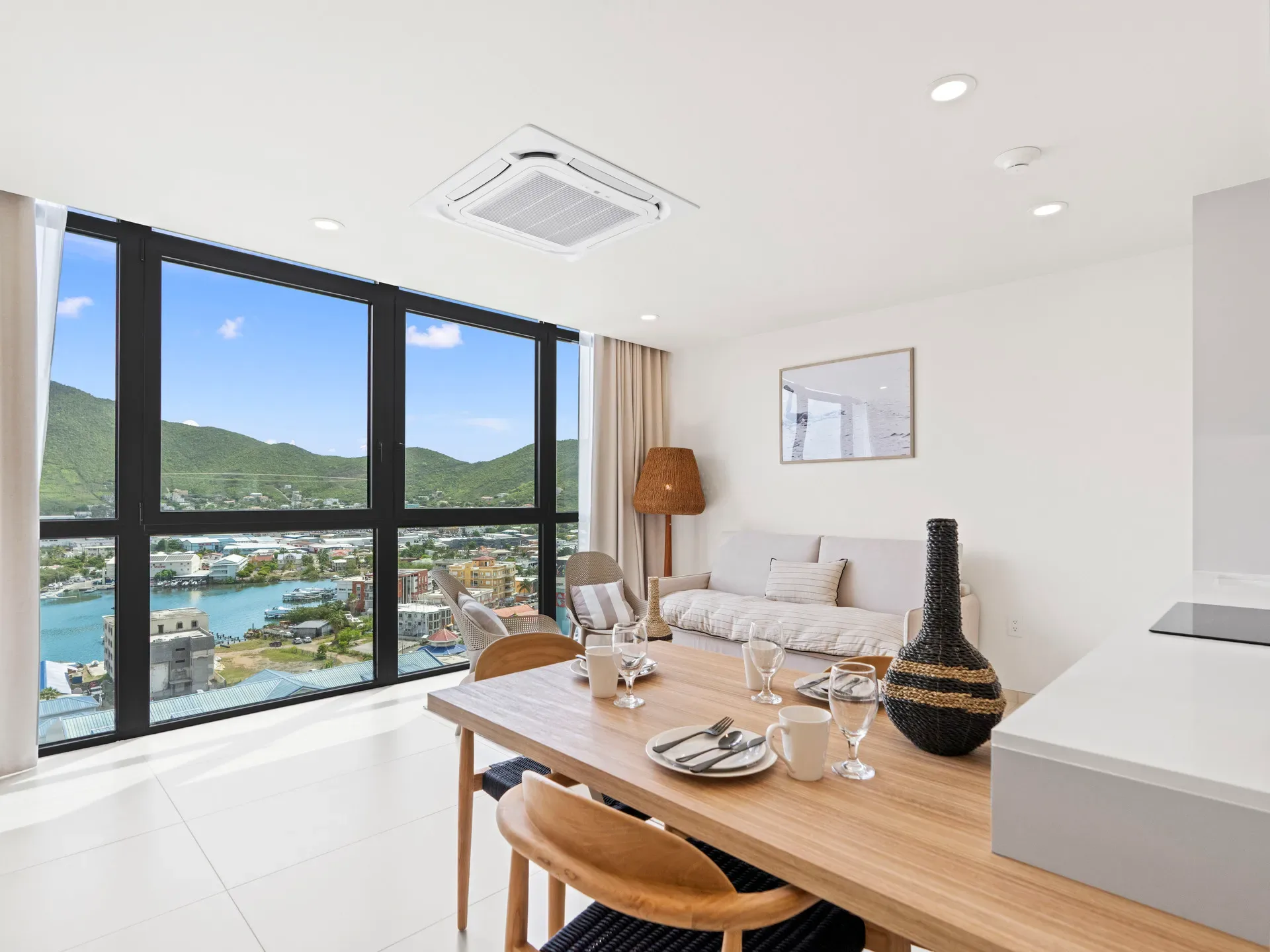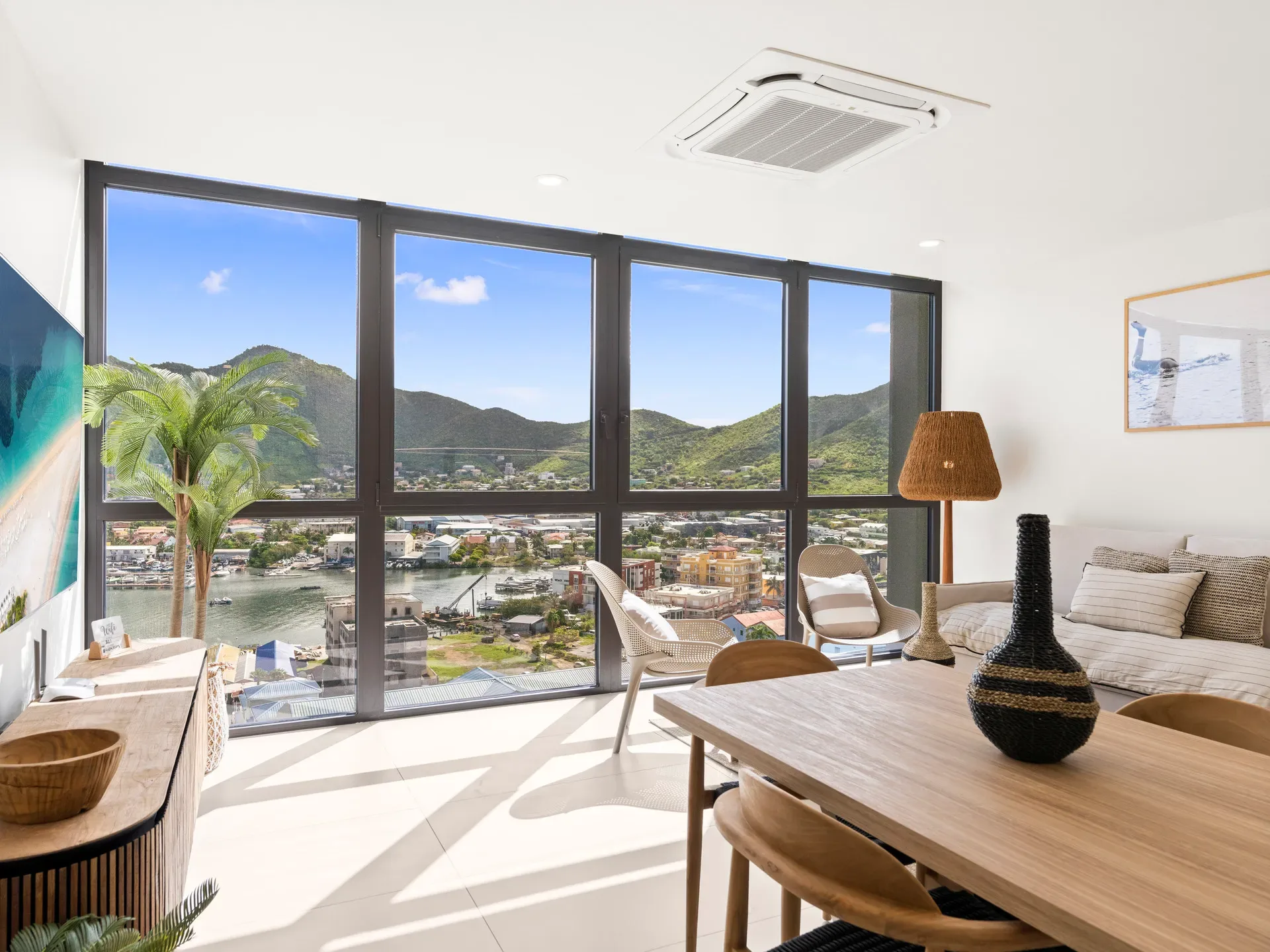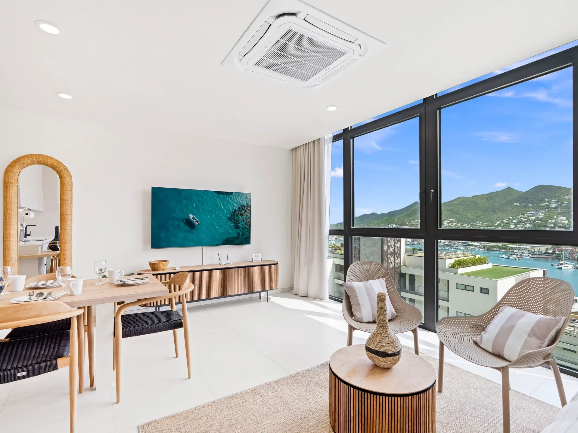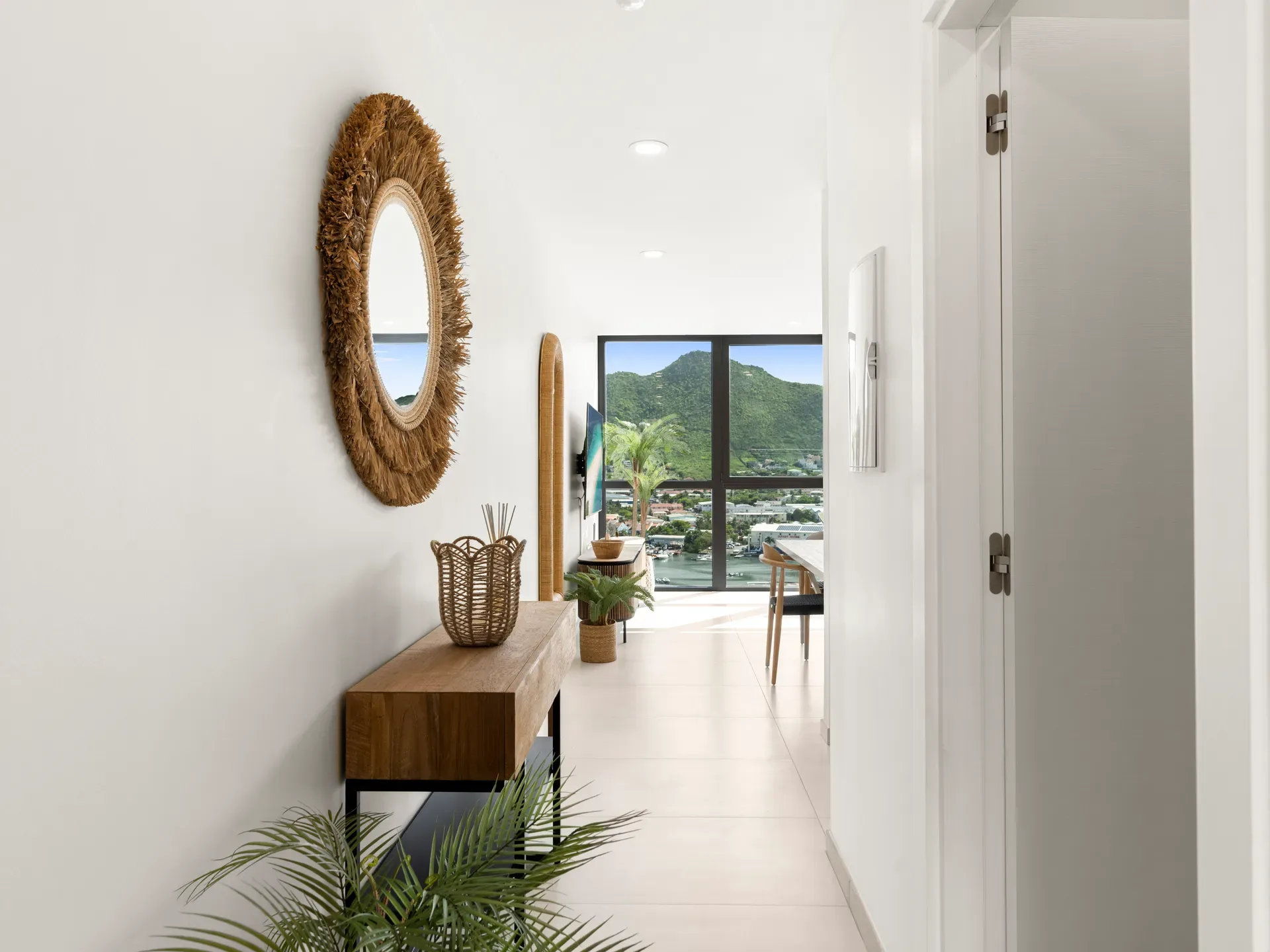 Experience the perfect blend of comfort, style, and stunning scenery in this modern 1-bedroom, 1-bathroom apartment, located on the second floor of Building C. Ideal for couples or solo travelers, this bright and airy space offers breathtaking views of the Simpson Bay Lagoon through large windows that fill the apartment with natural light.