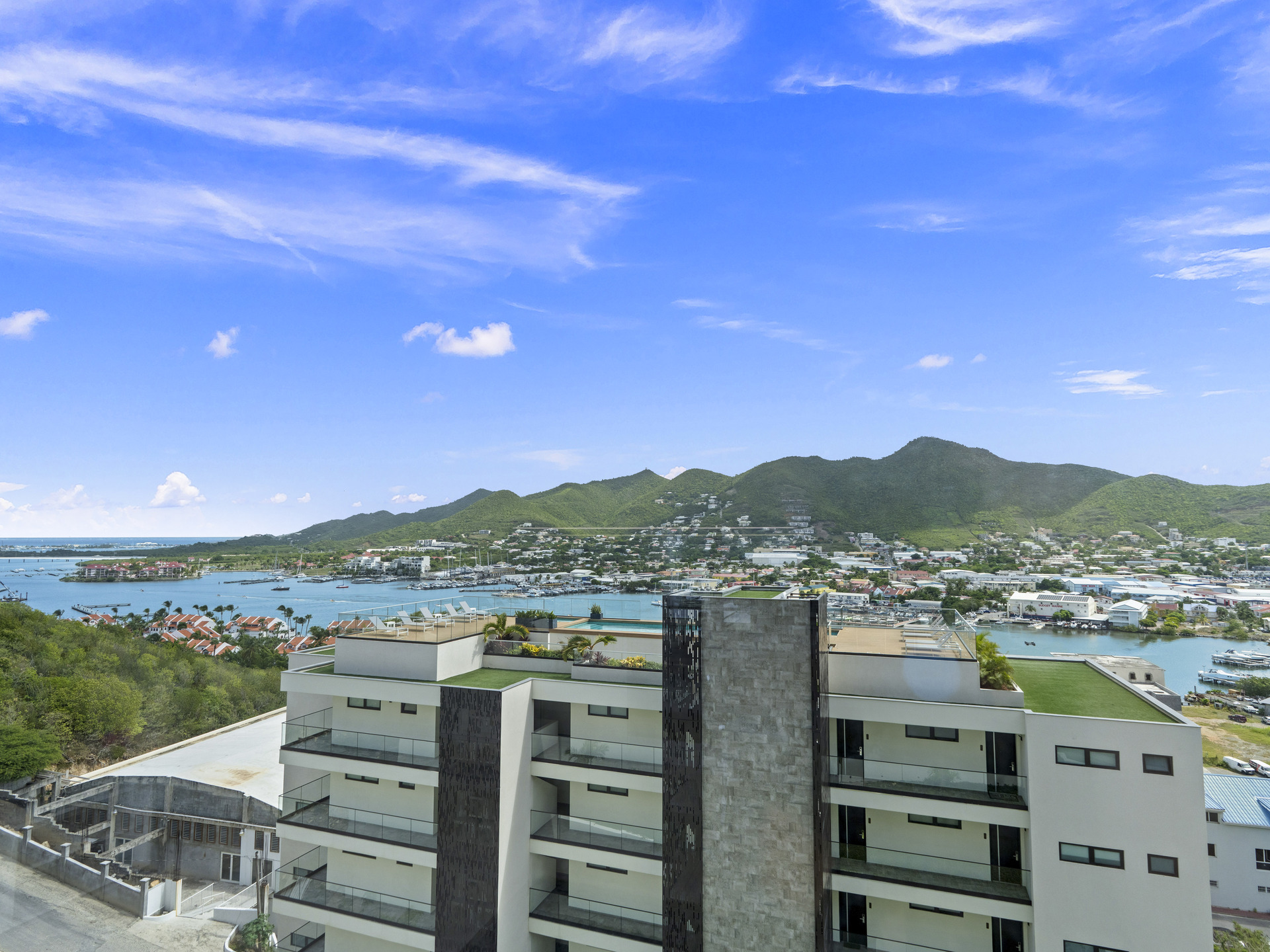 Guests staying at Apartment C-325 also have access to the shared rooftop area, featuring a refreshing pool, relaxing hot tubs, and stunning panoramic views of Simpson Bay and beyond, perfect for soaking up the island vibe.