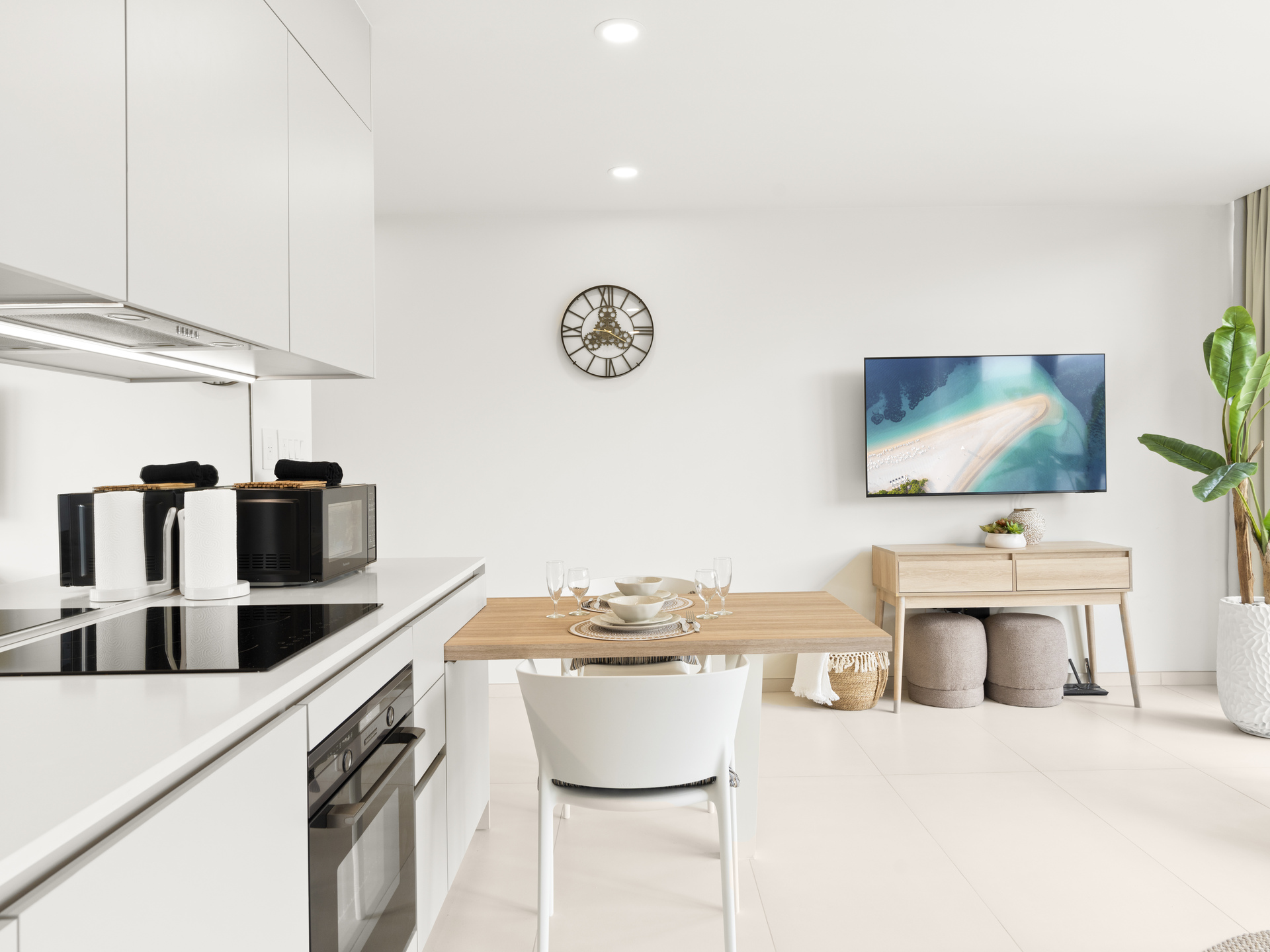 The fully equipped kitchen gives you the flexibility to cook your own meals and dine while taking in the peaceful surroundings.
