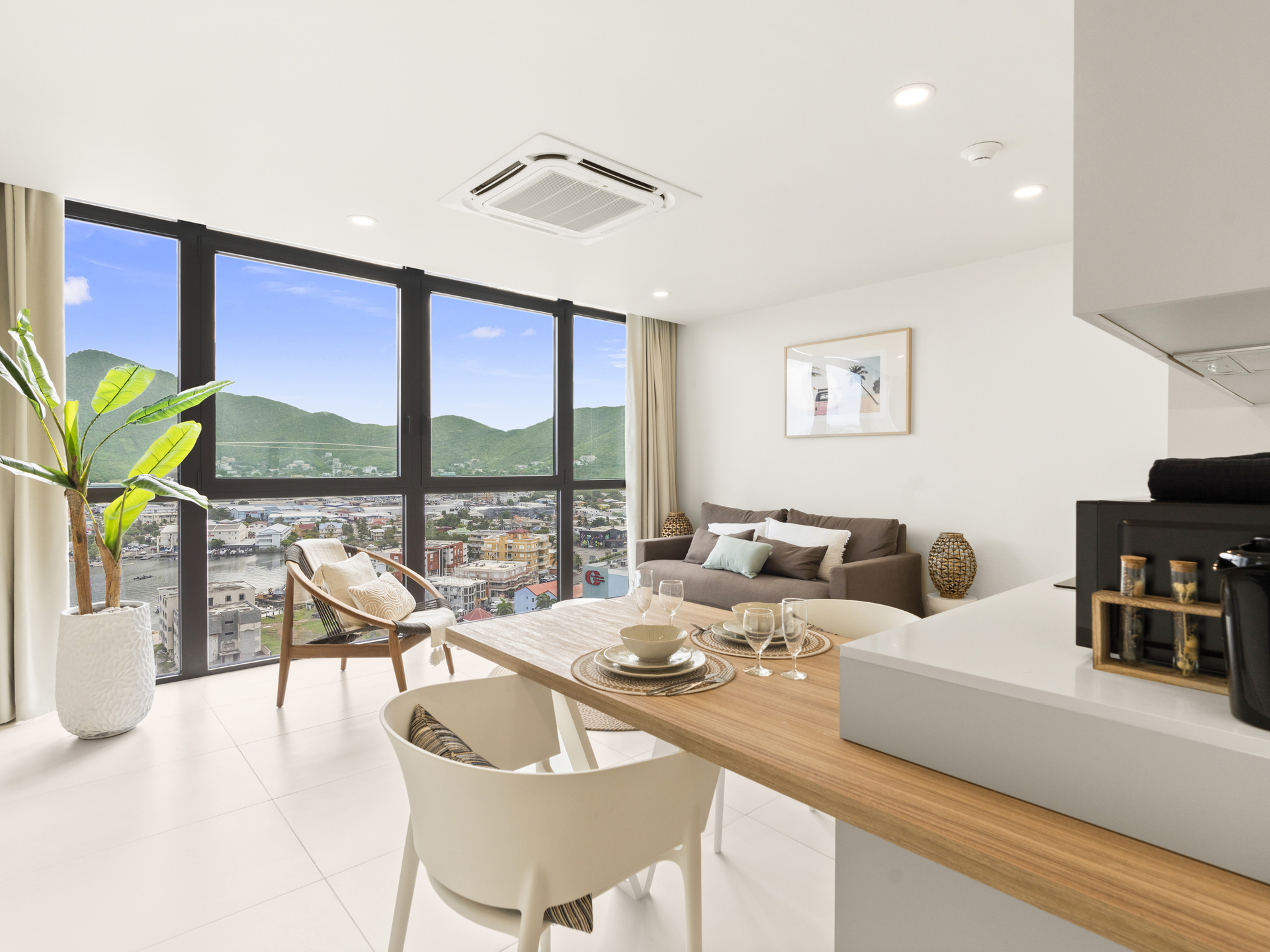 This stylish 1-bedroom, 1-bathroom apartment is located in Building C on the third floor of The Hills Residence, offering plenty of comfort and relaxing lagoon views for your stay in Sint Maarten.