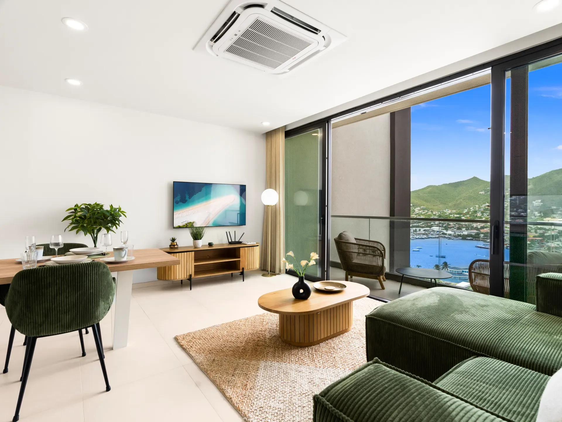 • Private balcony with lagoon views, ideal for relaxing and enjoying the Caribbean breeze