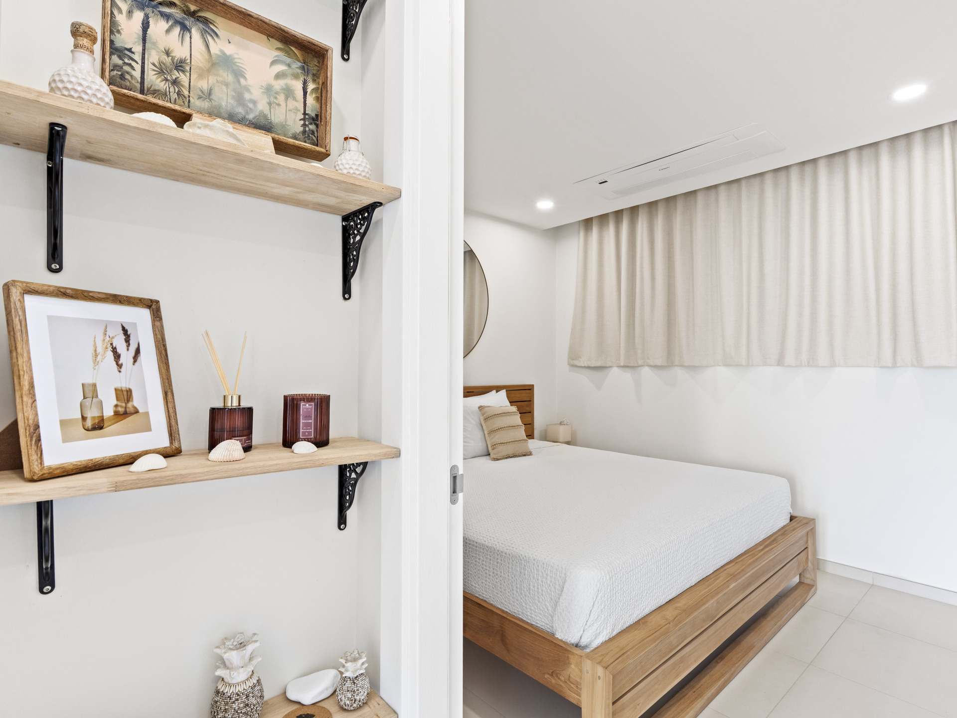 Inside, you’ll find a comfortable bedroom, a modern bathroom, and a fully equipped kitchen for your convenience. The bright living area is an inviting space to relax after a day exploring Sint Maarten’s beautiful surroundings.