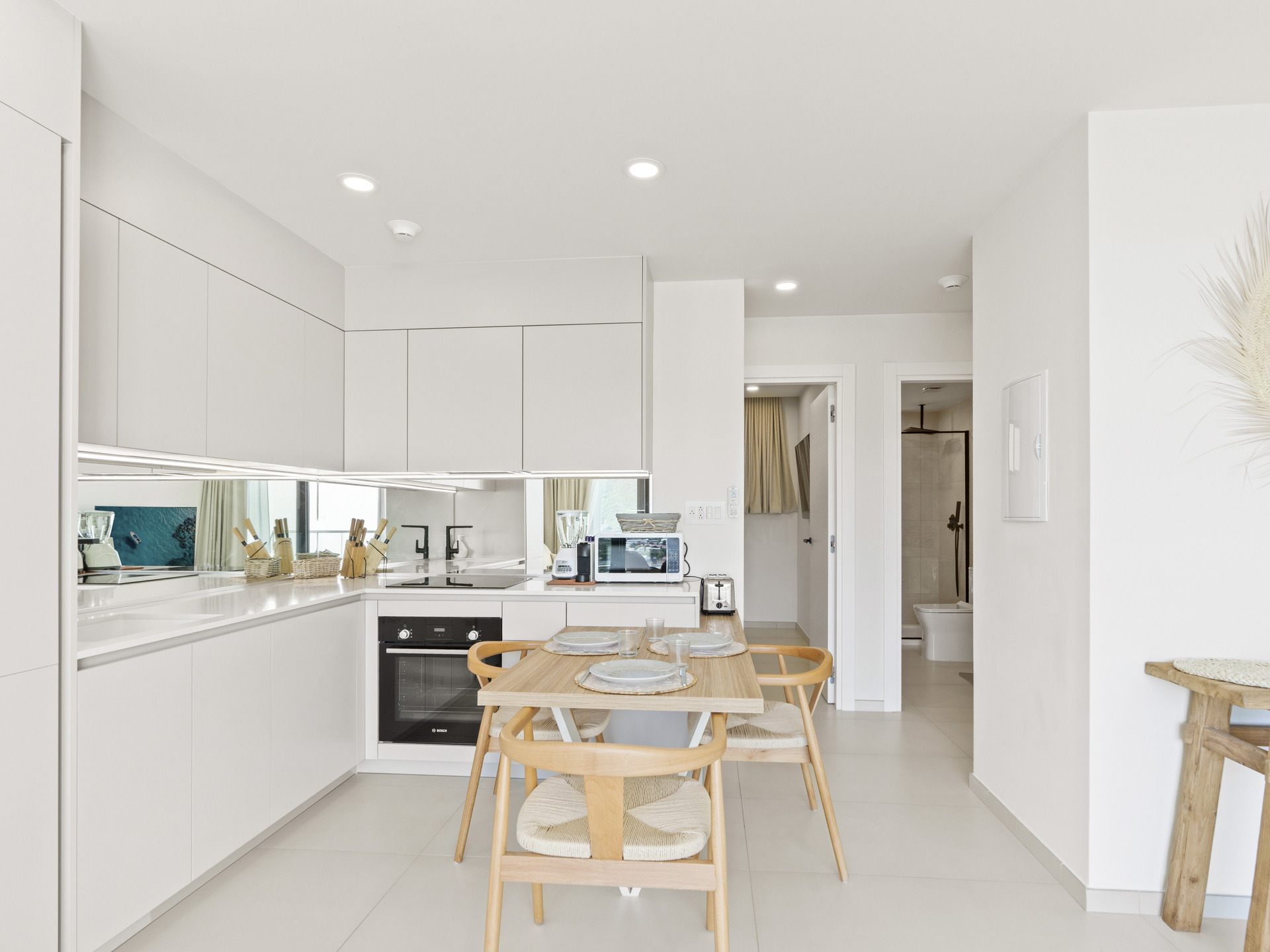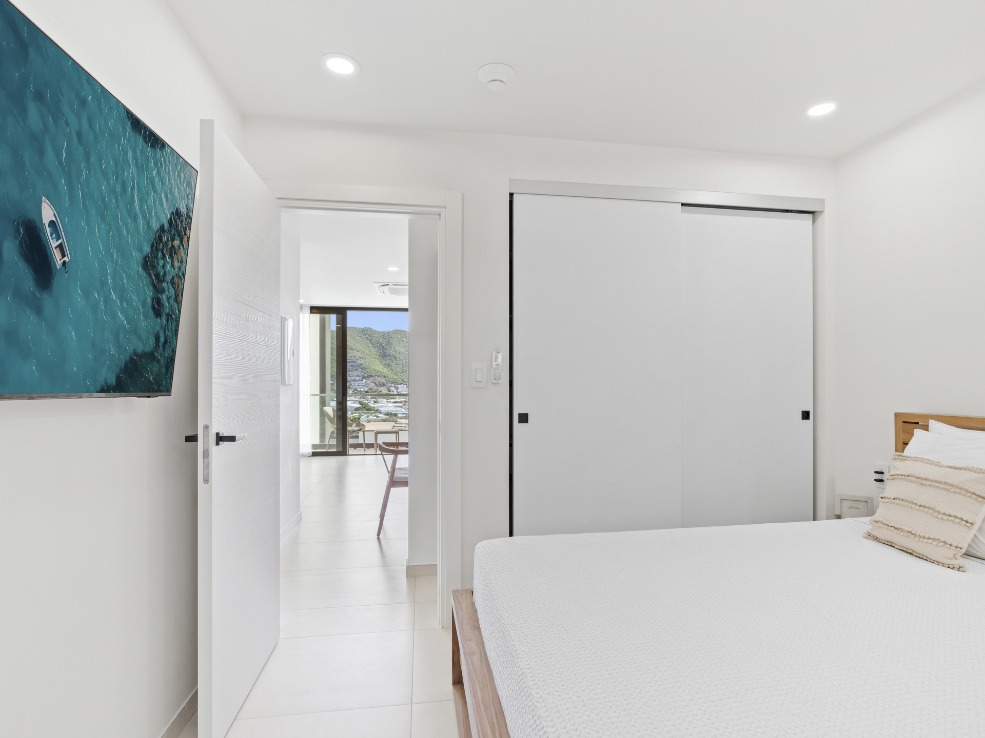 Step inside and feel the day’s worries melt away. The modern, open-concept interior is designed for comfort and relaxation, creating a serene space to unwind. Enjoy a fully equipped kitchen—complete with a dishwasher and washing machine—making your stay as convenient as it is comfortable. Your private balcony is the star of the show, presenting a breathtaking, uninterrupted view of the tranquil lagoon. Imagine sipping your morning coffee or enjoying an evening cocktail while watching the boats glide across the shimmering water.