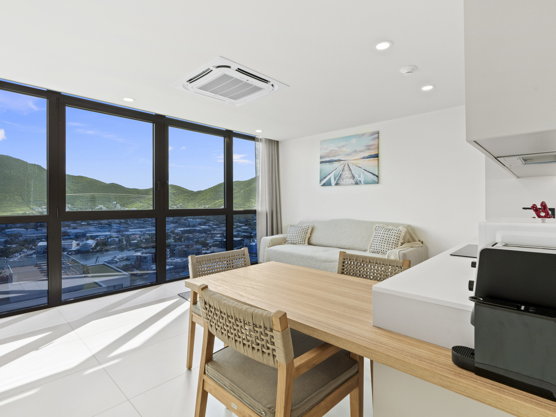 Perched on the 3rd floor of Building 4, this sophisticated home offers spectacular views of the ocean, Anguilla, the lagoon, and the lush surrounding mountains, creating a serene and luxurious living experience.