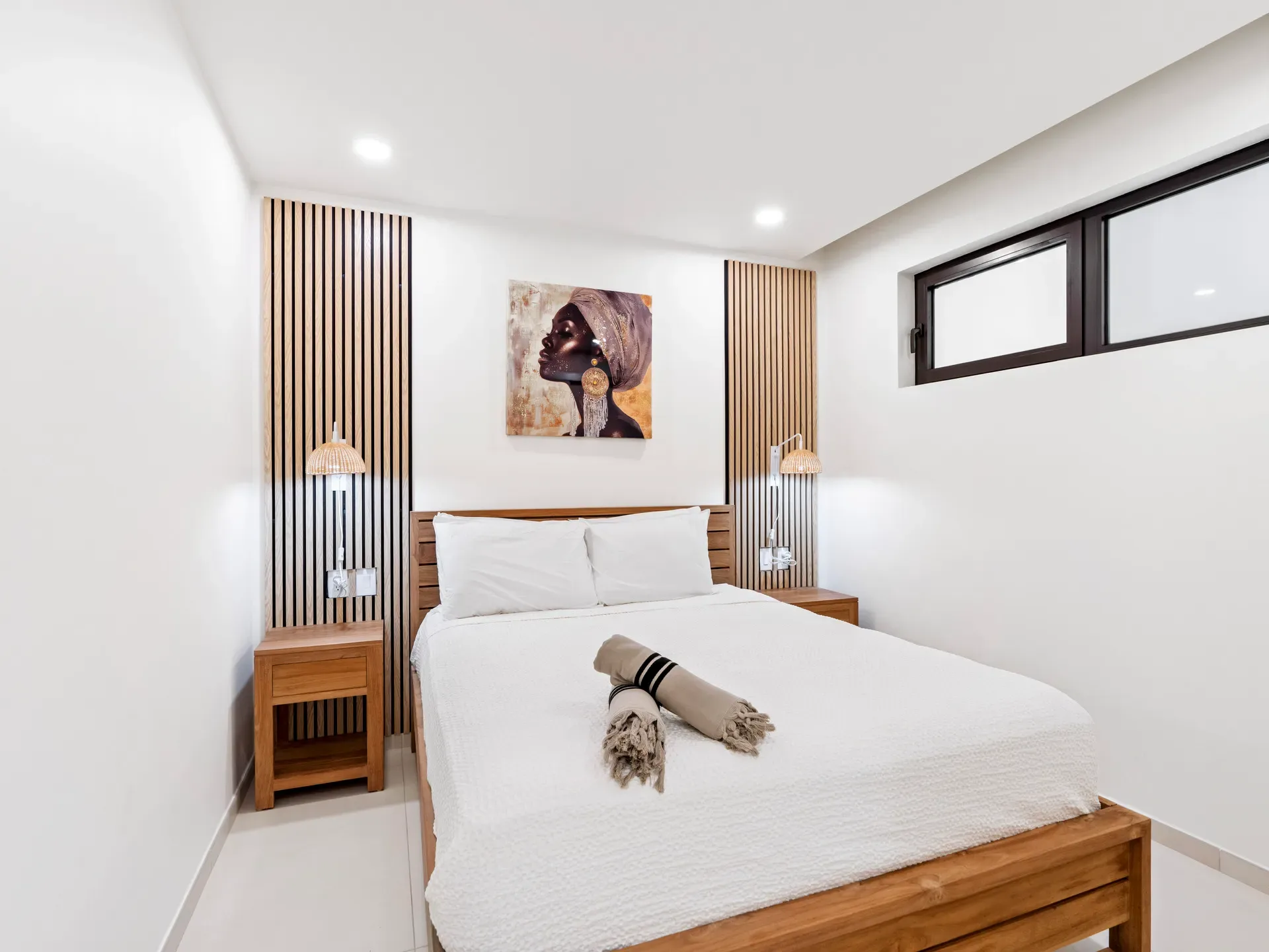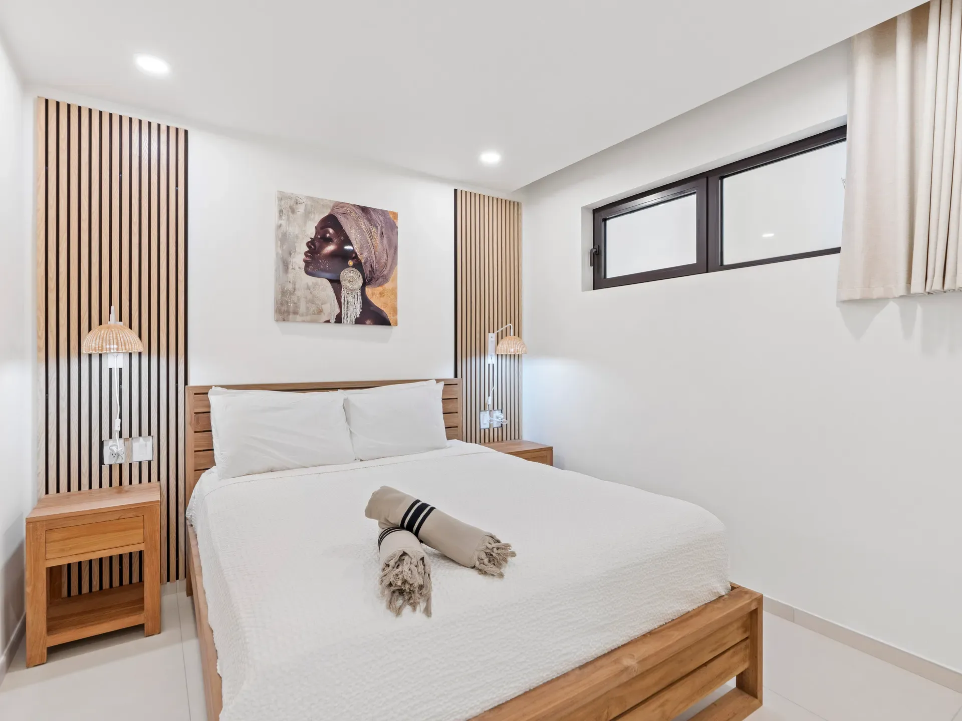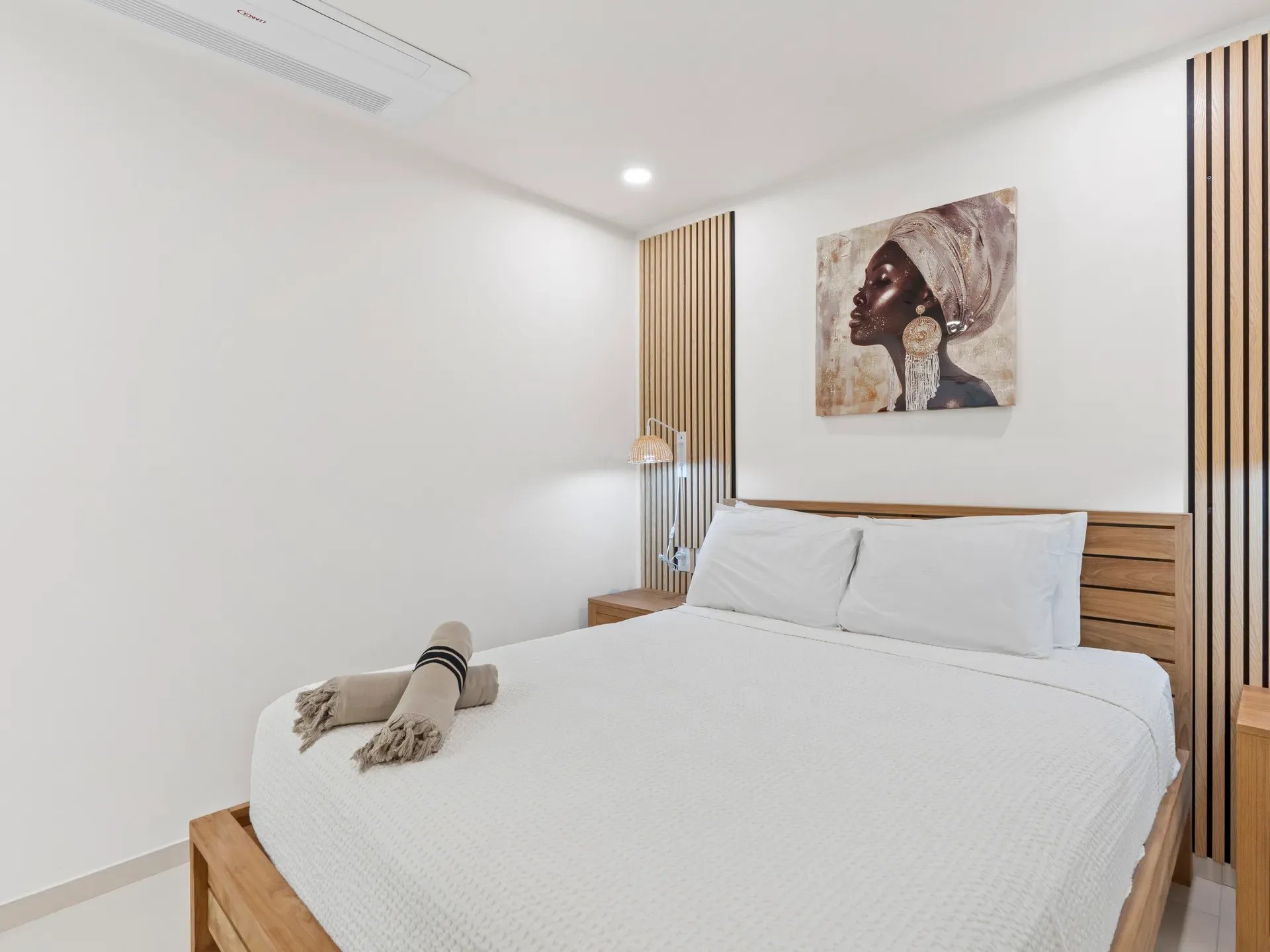 Tranquil and stylish bedroom with comfortable bedding