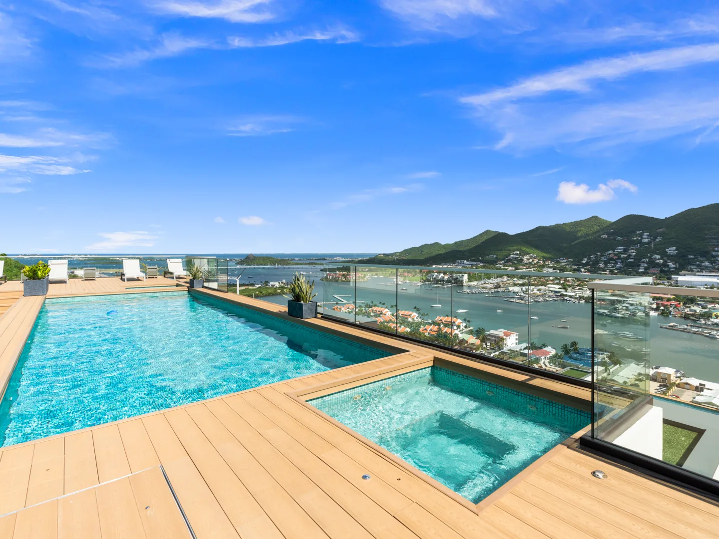 Located within The Hills Residence, Apartment D-445 offers a bright and peaceful setting, ideal for a comfortable stay in the heart of Simpson Bay. Combining modern design and functionality, this one-bedroom apartment stands out with its beautiful lagoon view and fully equipped amenities.