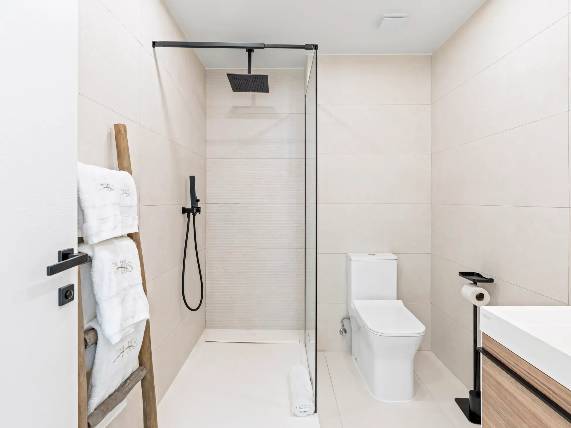 Elegant bathroom with a walk-in shower, providing a spa-like experience.