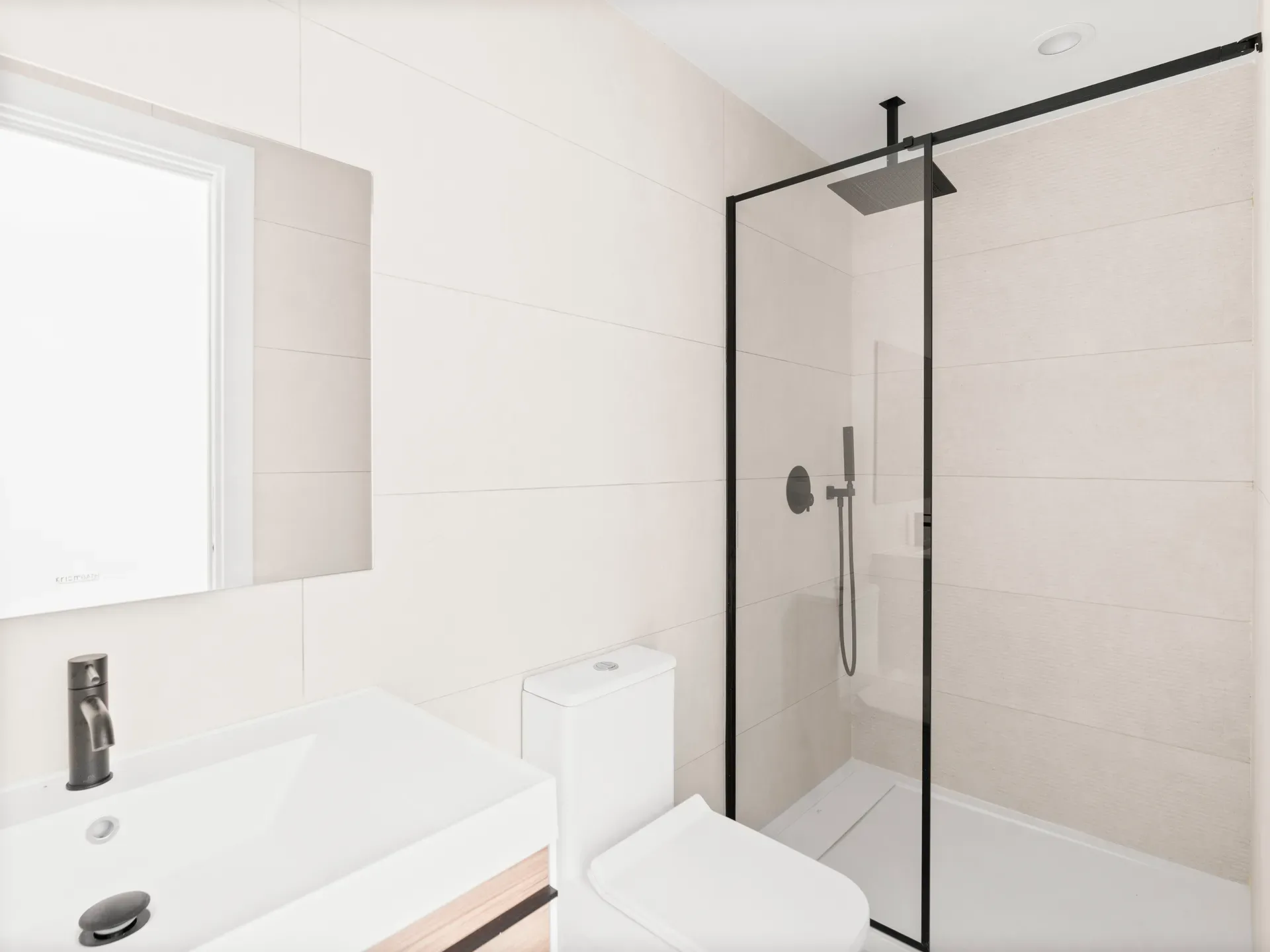 Elegant, contemporary, and functional bathroom combining style and practicality.