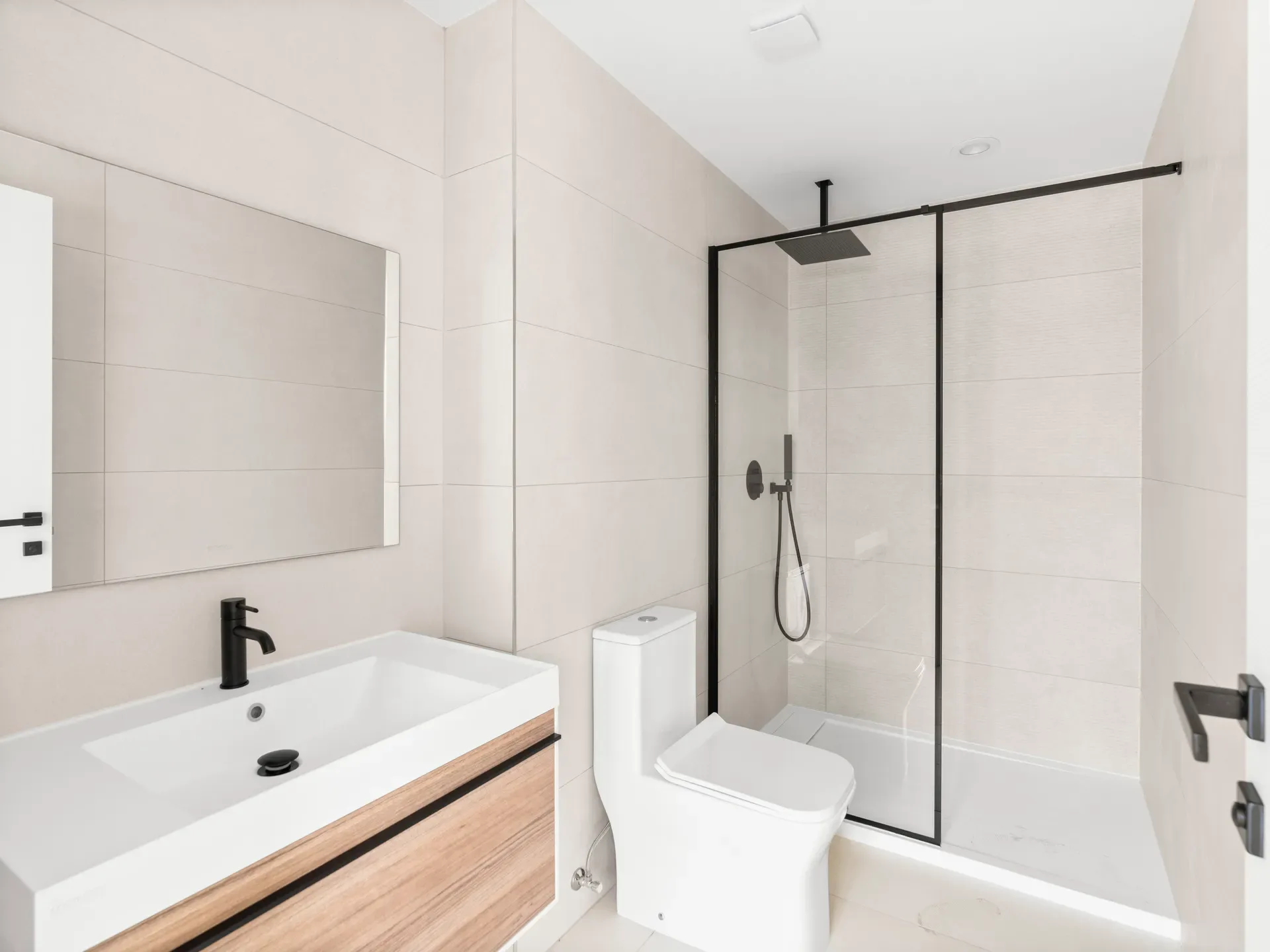 Elegant bathroom with a walk-in rain shower for a spa-like experience.