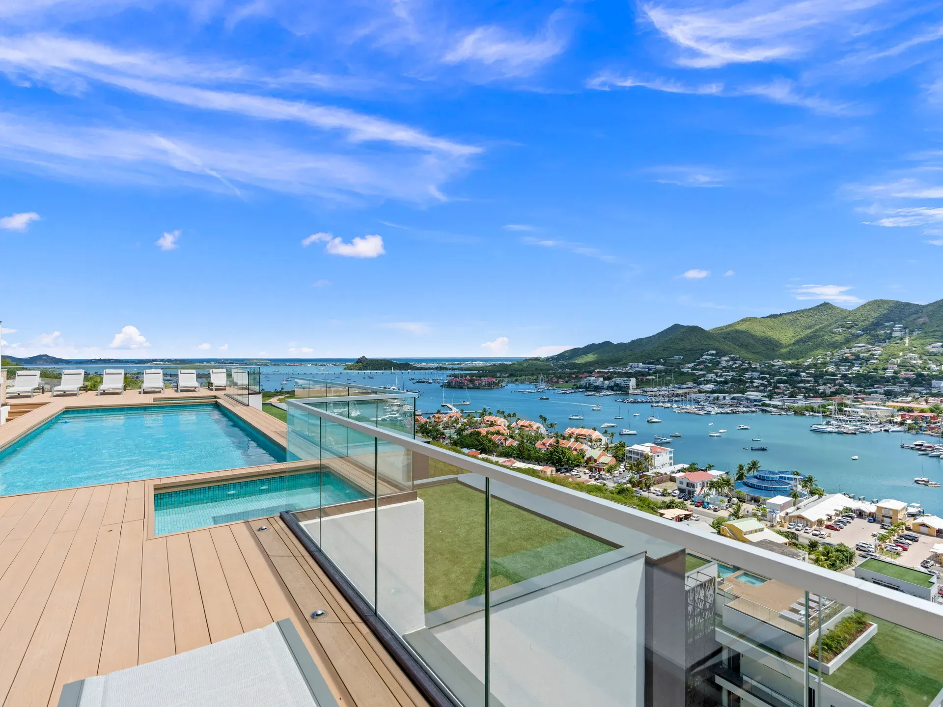 • Located in Simpson Bay, close to beaches, restaurants, shops, and nightlife. Offers peace, privacy, and stunning panoramic views from the top floor.