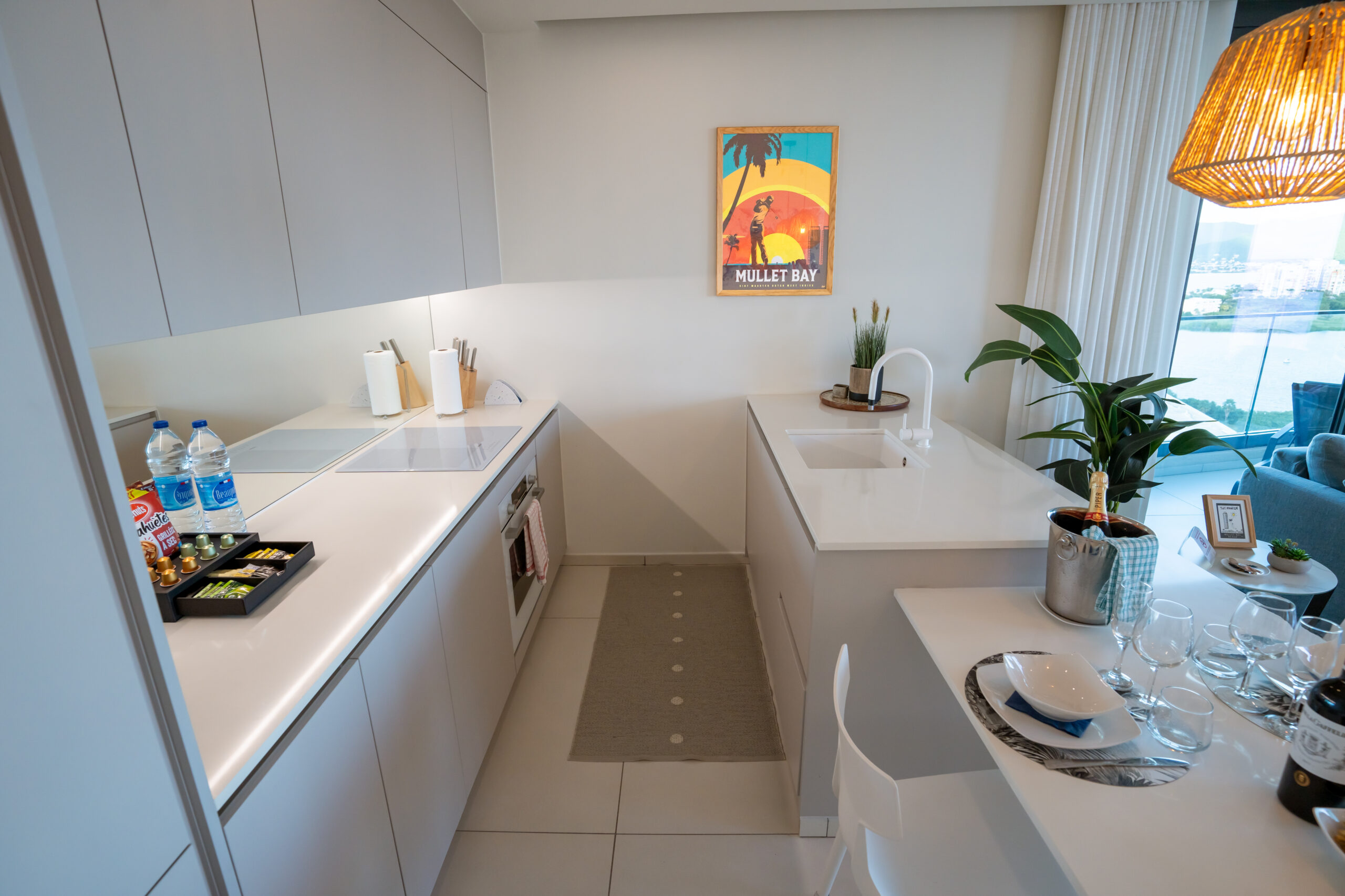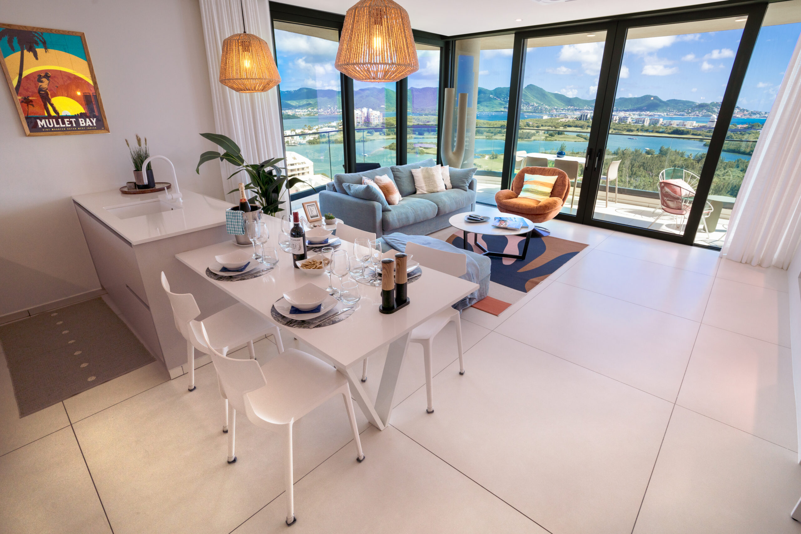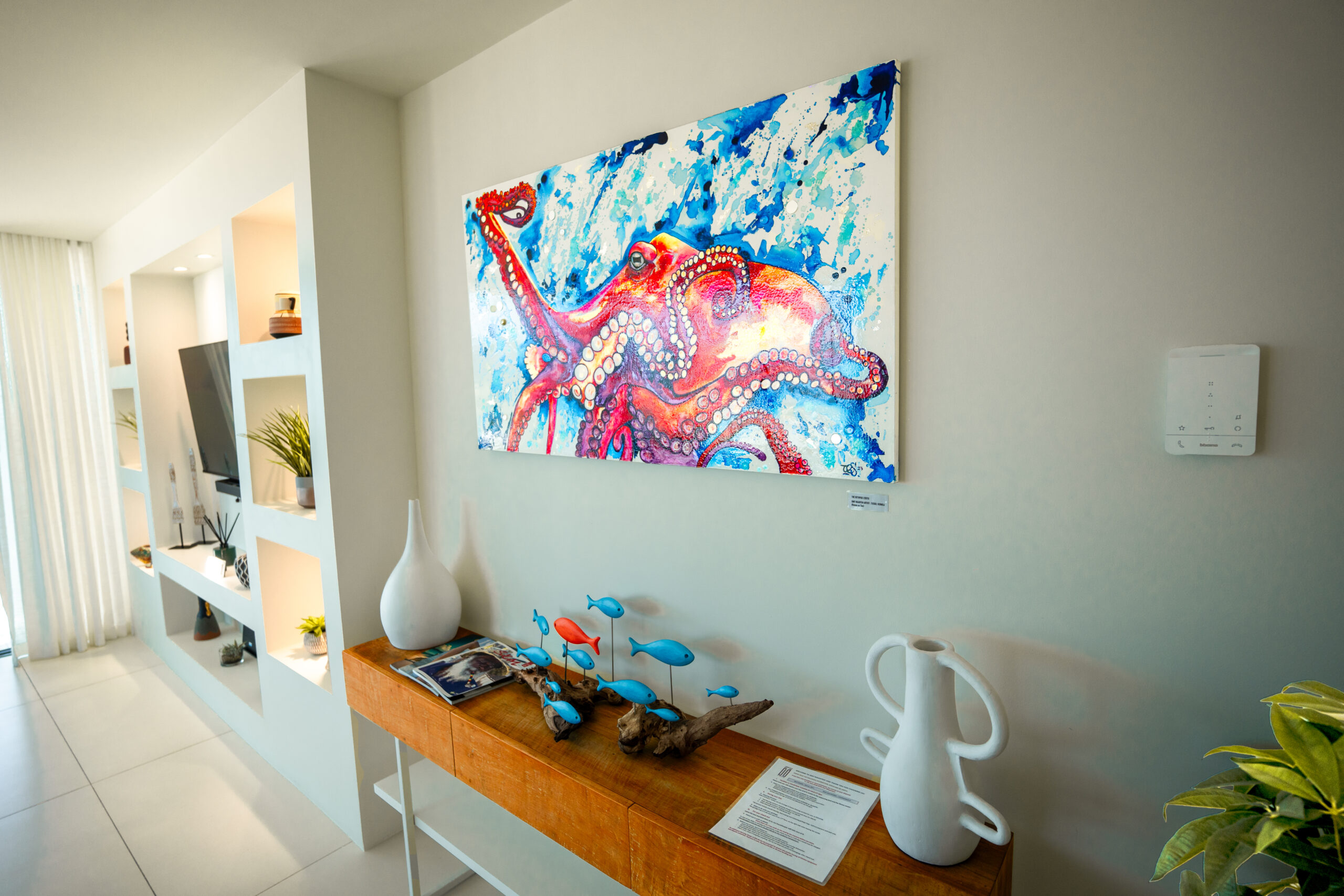 Every element of this condo has been meticulously designed to surpass your expectations. Floor-to-ceiling windows showcase breathtaking panoramic views, visible from the living area and both bedrooms. Furnished top-to-bottom with high-quality pieces and featuring unique local artwork, including the incredible “Neon Octopus” by Sint Maarten’s own Tess, this home is a true modern tropical gem.